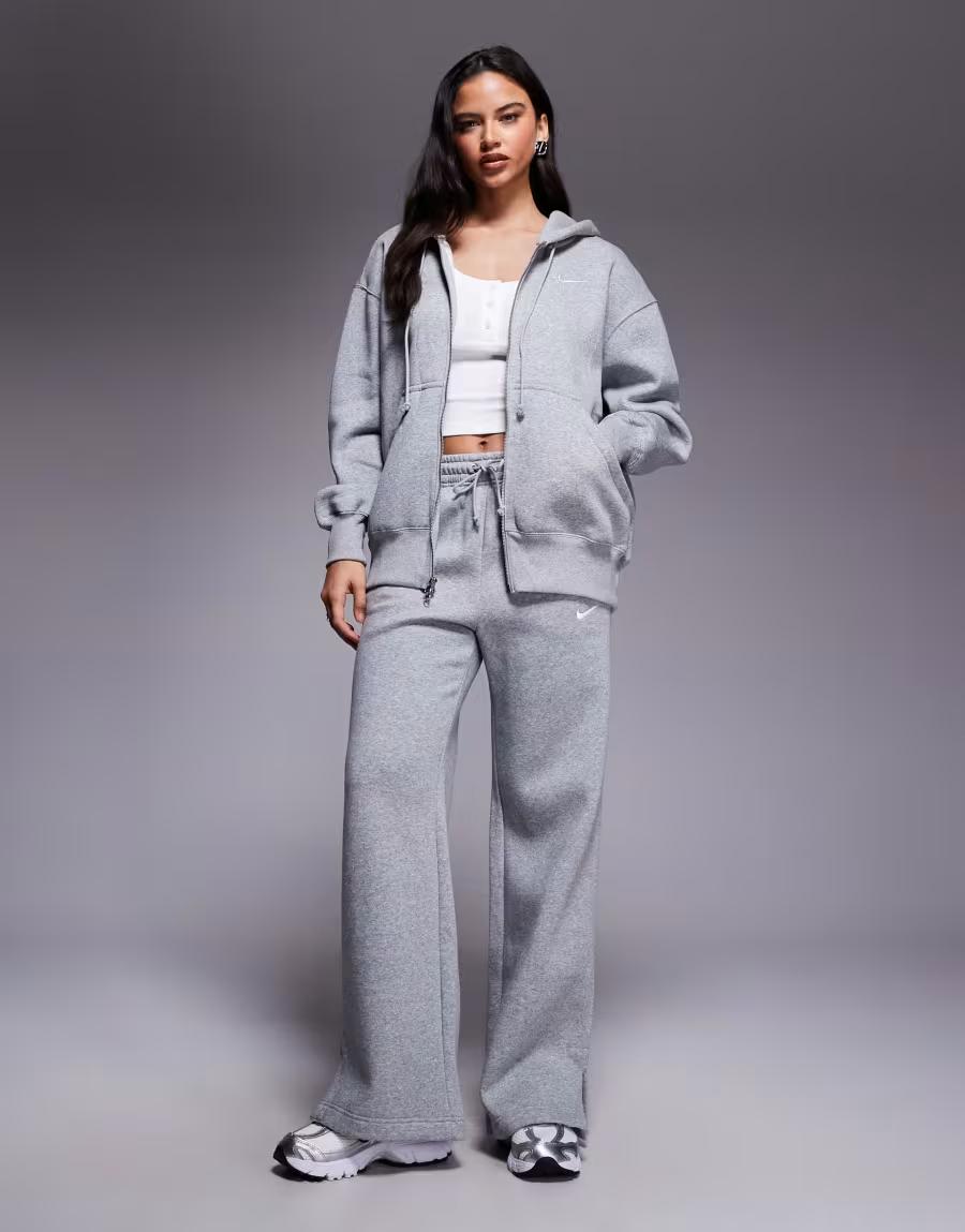 Nike mini swoosh oversized full zip hoodie in grey and sail