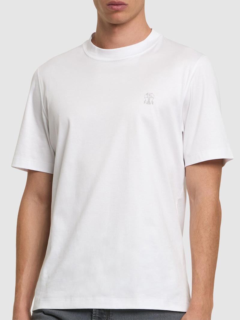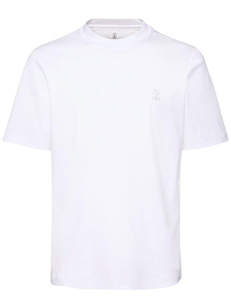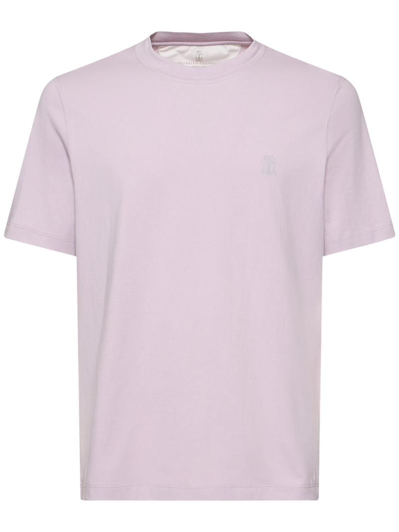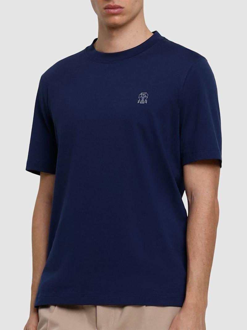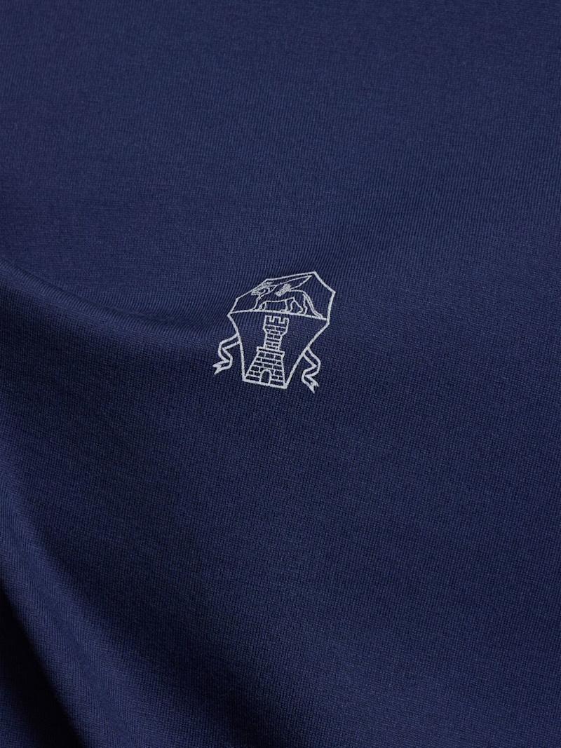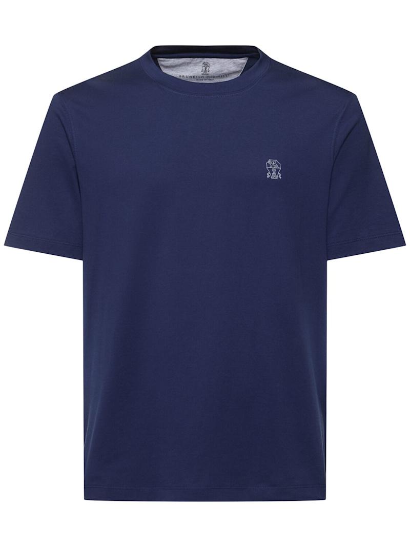 Logo棉质平纹针织T恤 - Galassia蓝色 - 男士 - Brunello Cucinelli - 圆领设计.