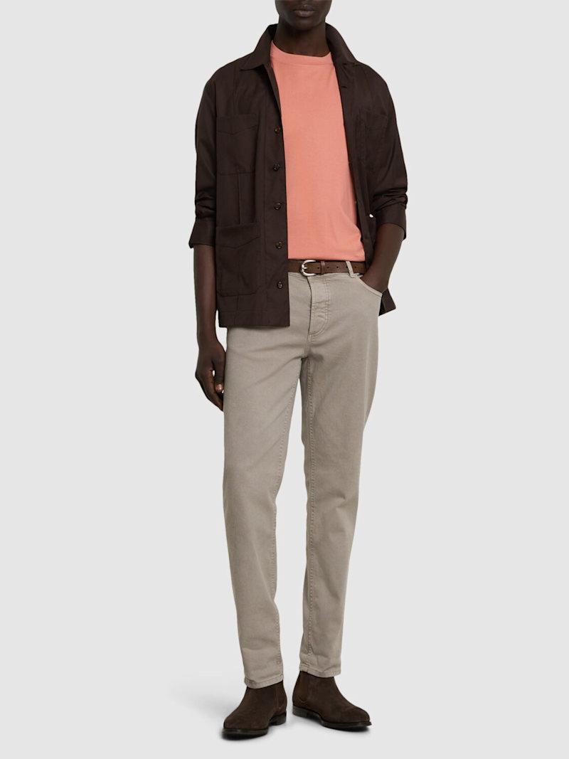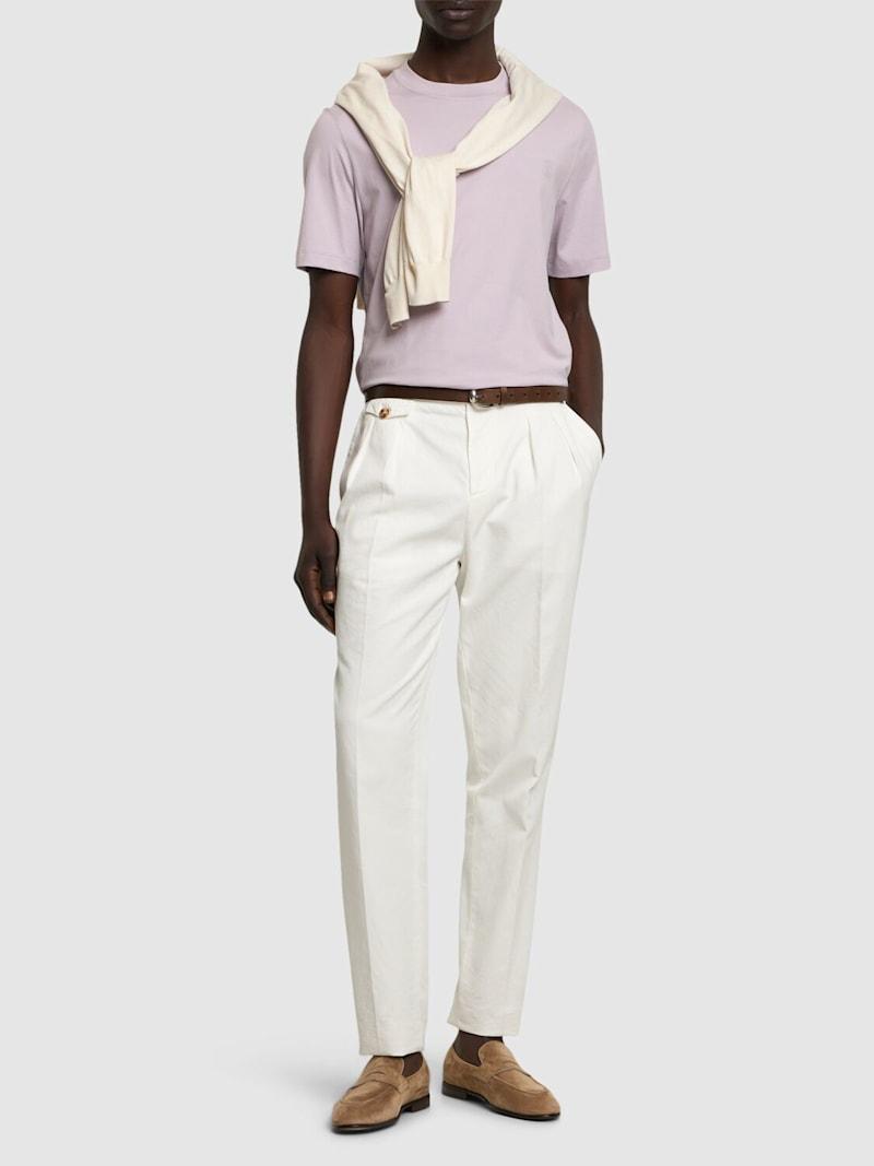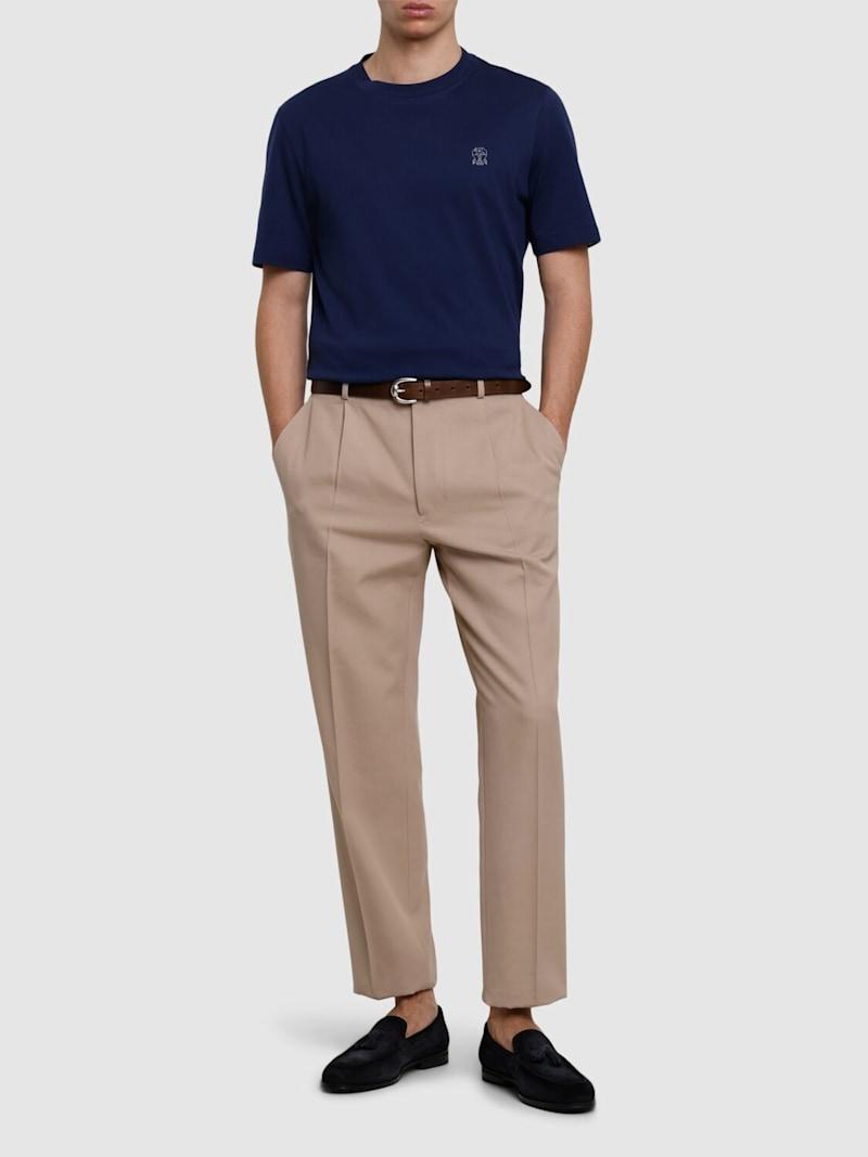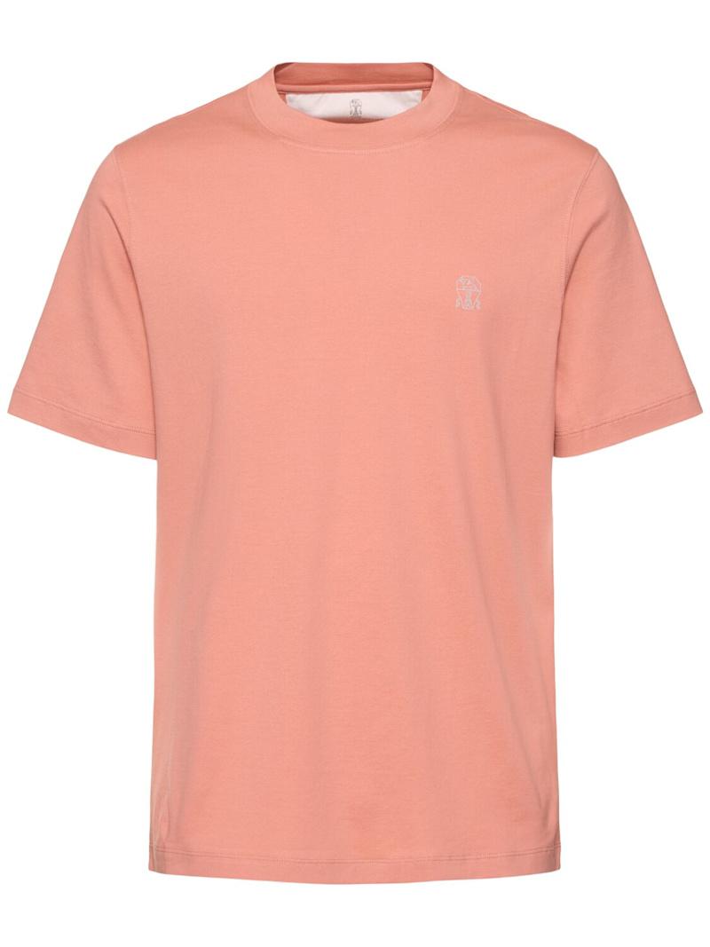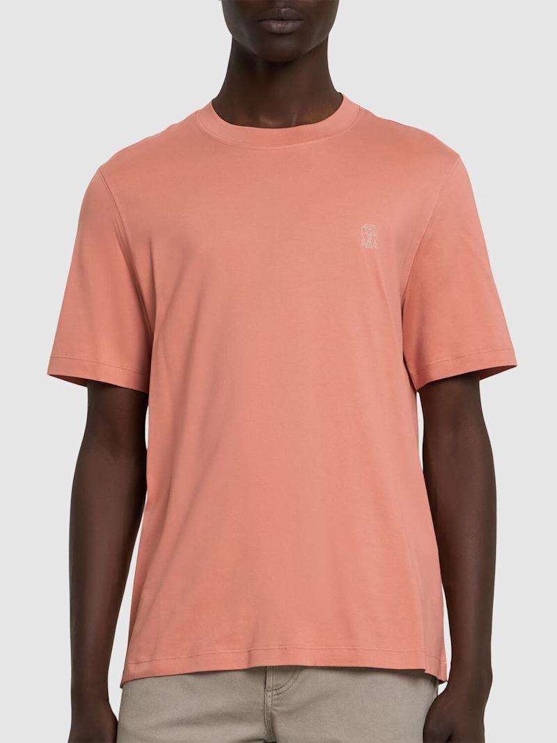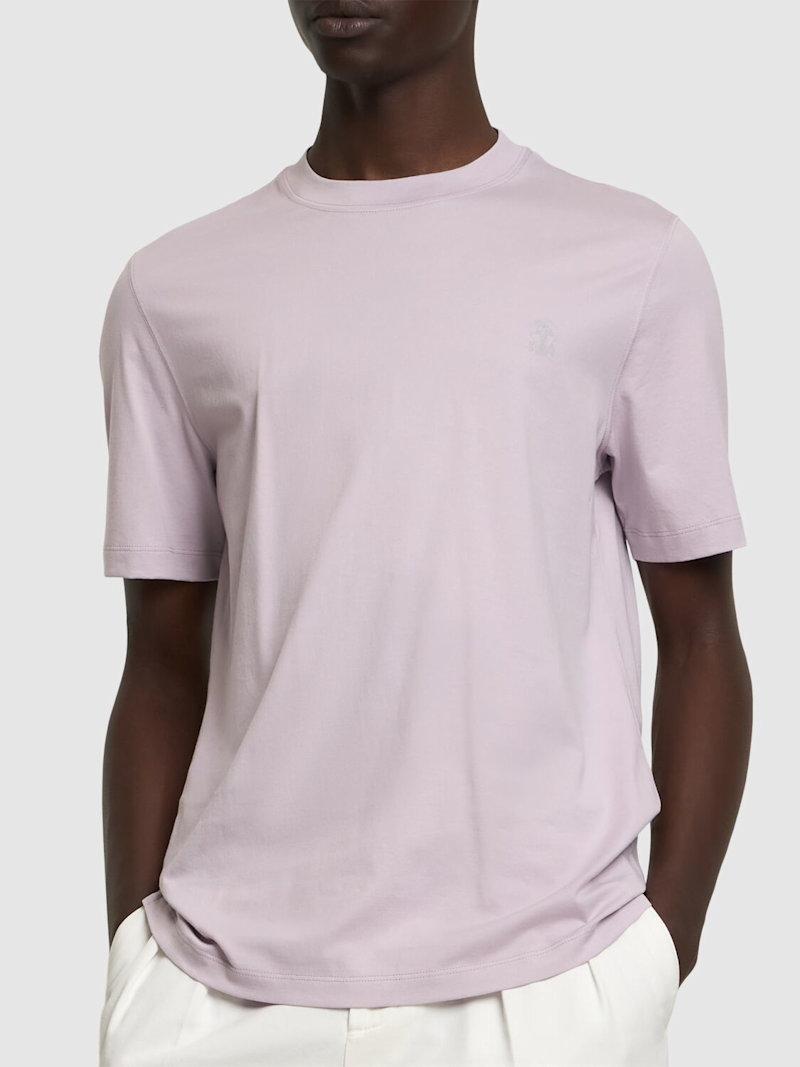 Logo棉质平纹针织T恤 - Galassia蓝色 - 男士 - Brunello Cucinelli - 圆领设计.