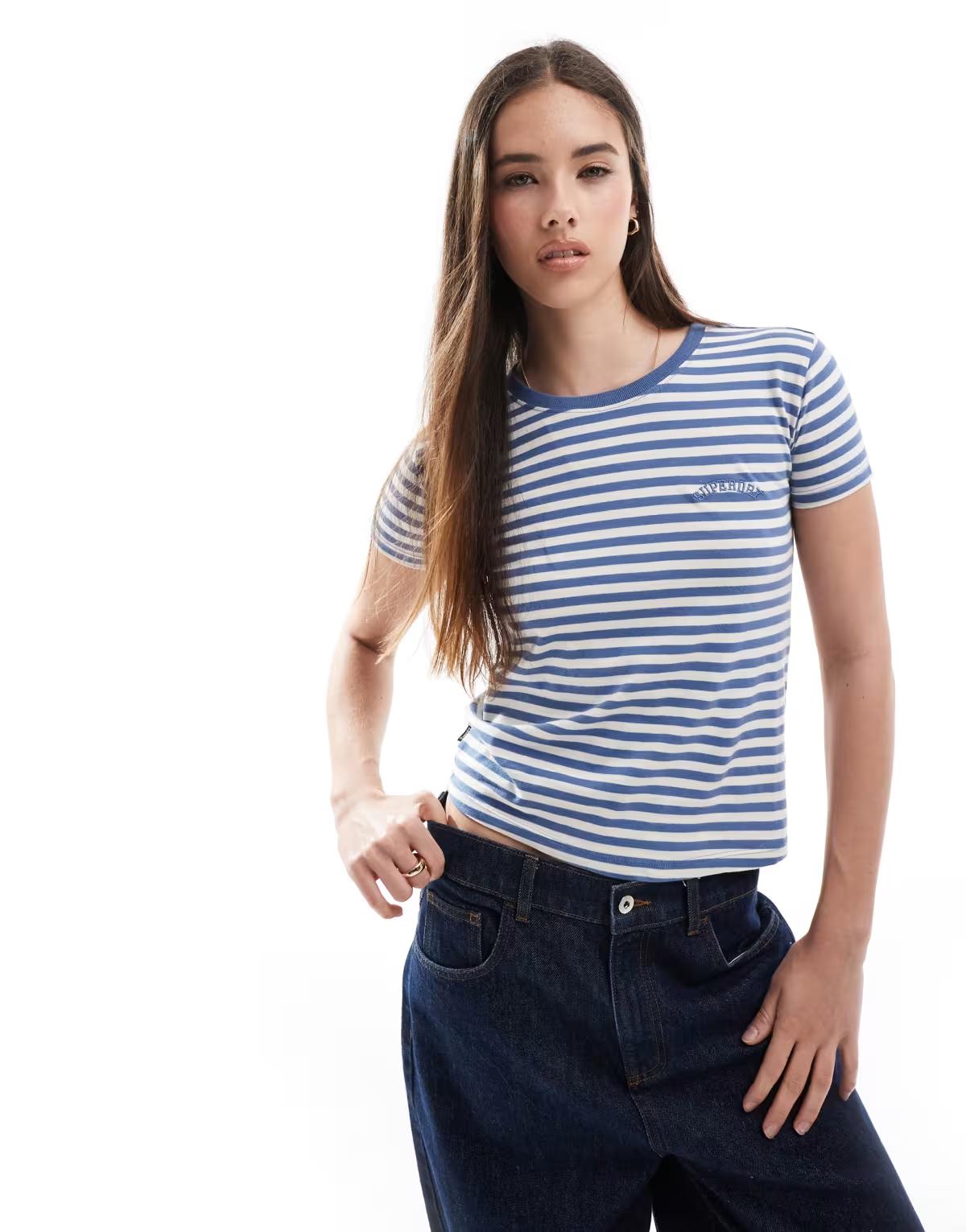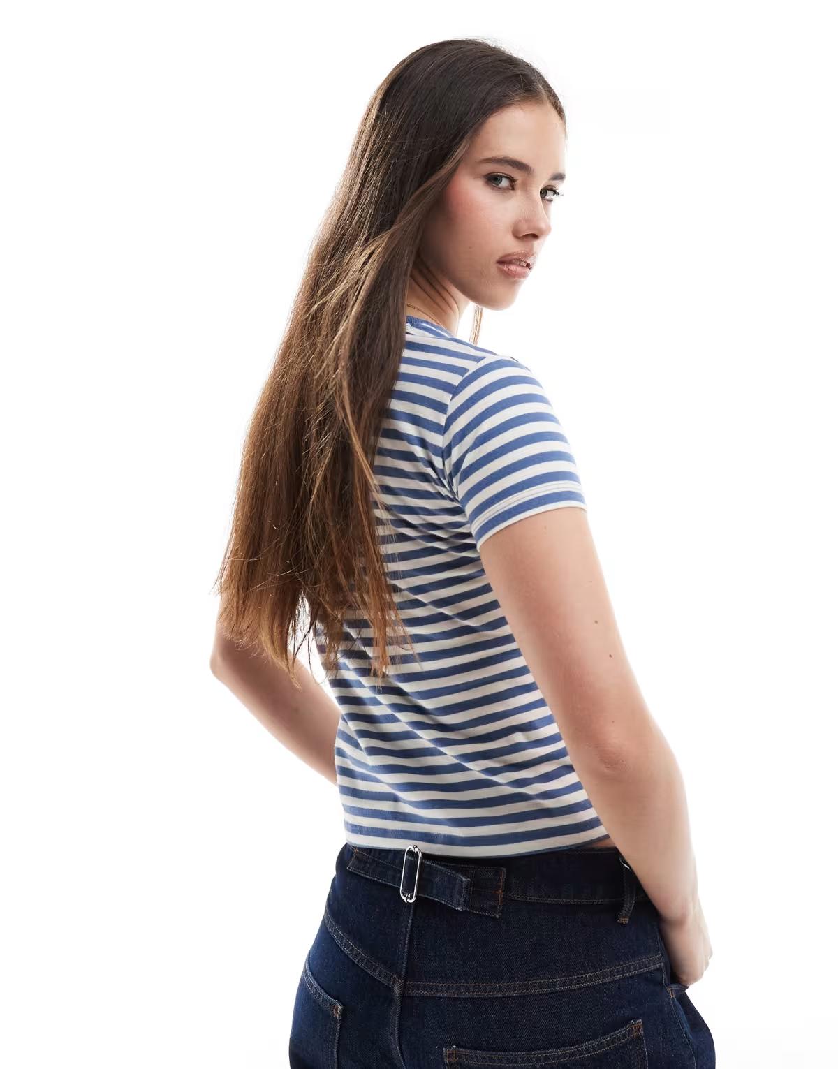Superdry Essential logo striped fitted t-shirt in wedgewood blue stripe
