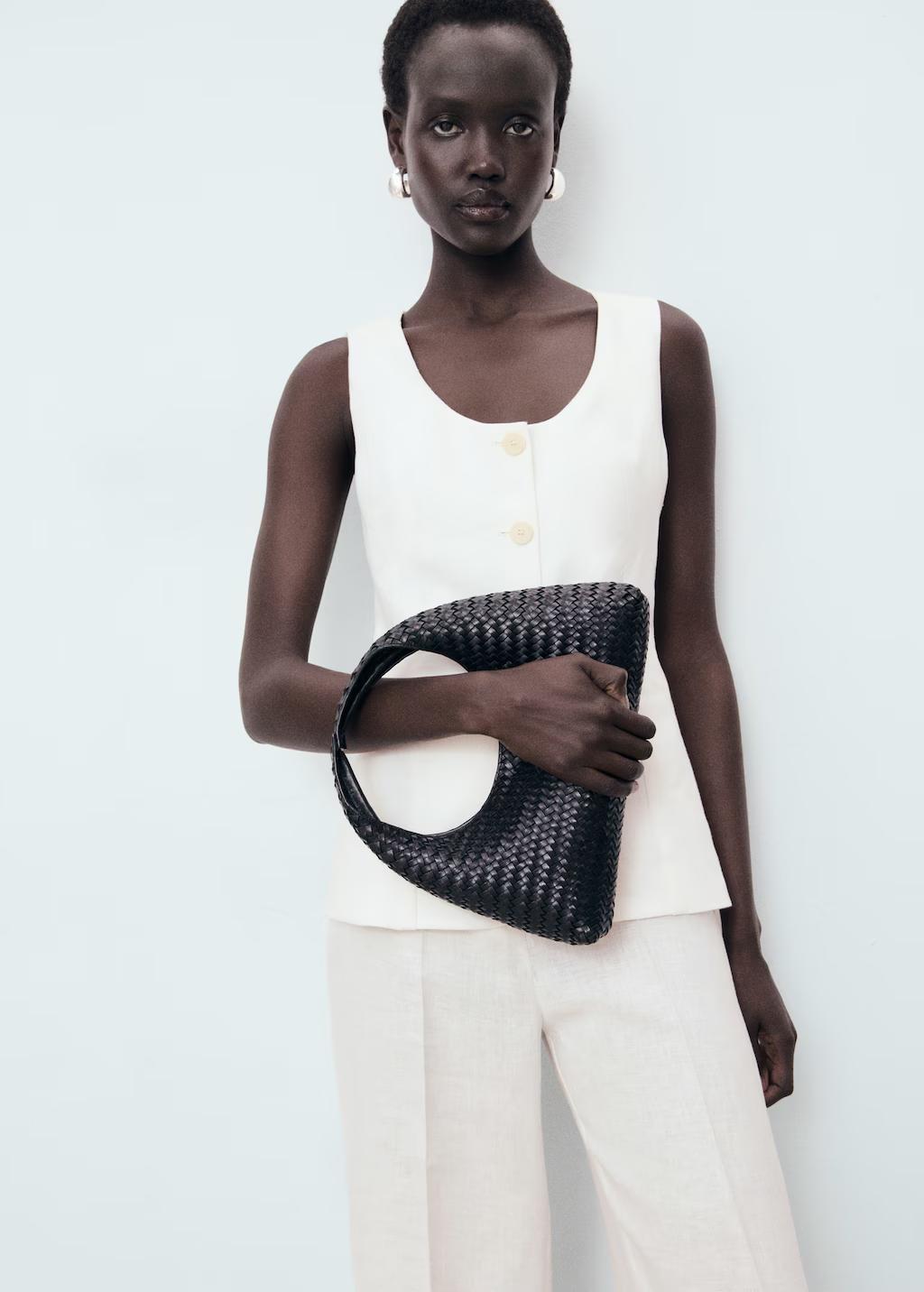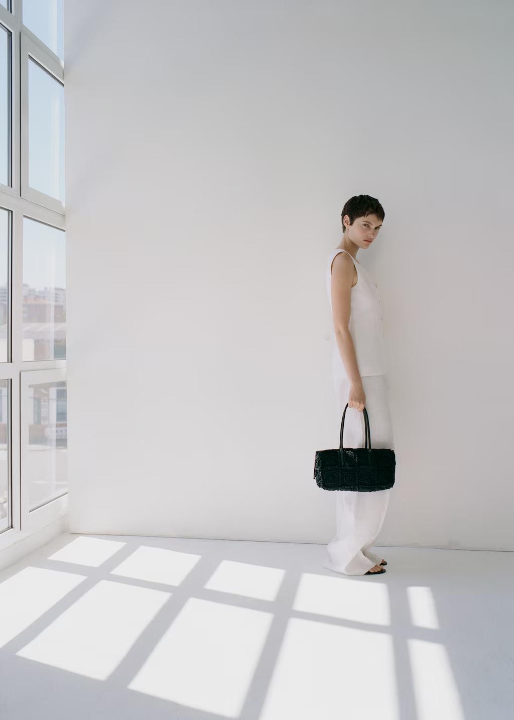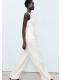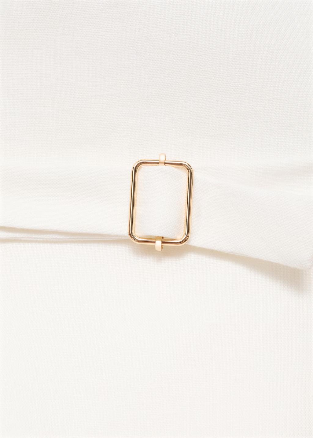 Tejido 100% de lino. Diseño largo. Diseño recto. Estilo traje. Cuello escotado. Detalle hebilla en la parte posterior. Cierre delantero con botones. Forro interior 100% algodón. Largo del interior de la pierna 85.6 cm. Largo de costado 138.5 cm. Largo de la espalda 66.7 cm