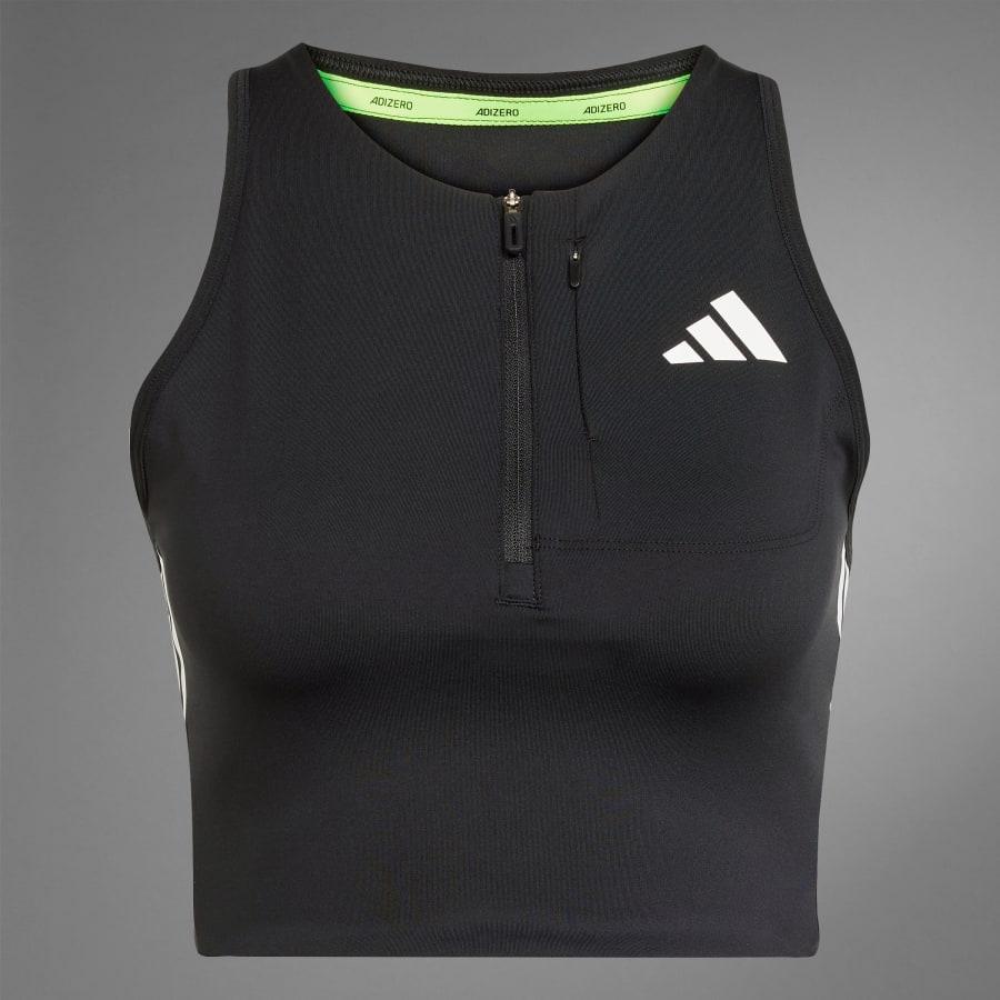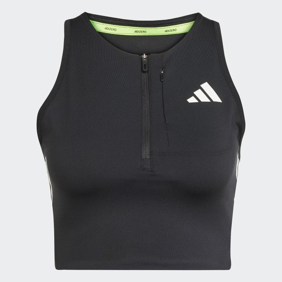 Tight fit","Zipper closure","79% polyester (recycled), 21% elastane","Cropped length","CLIMACOOL","Zip chest pocket","Back and side mesh pockets","Reflective logos"
