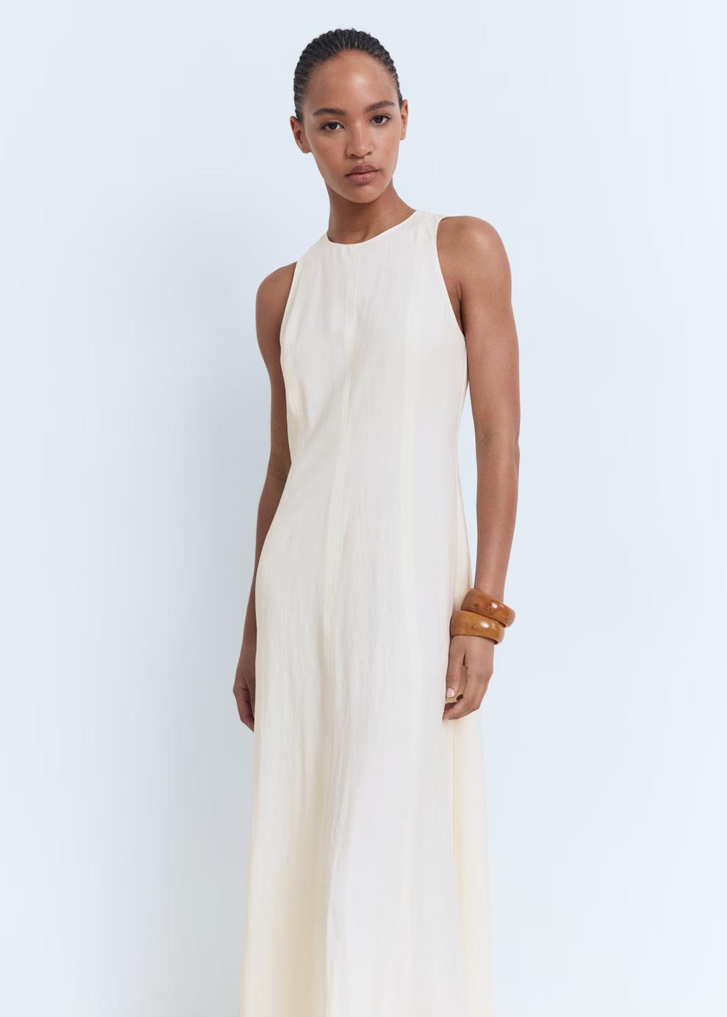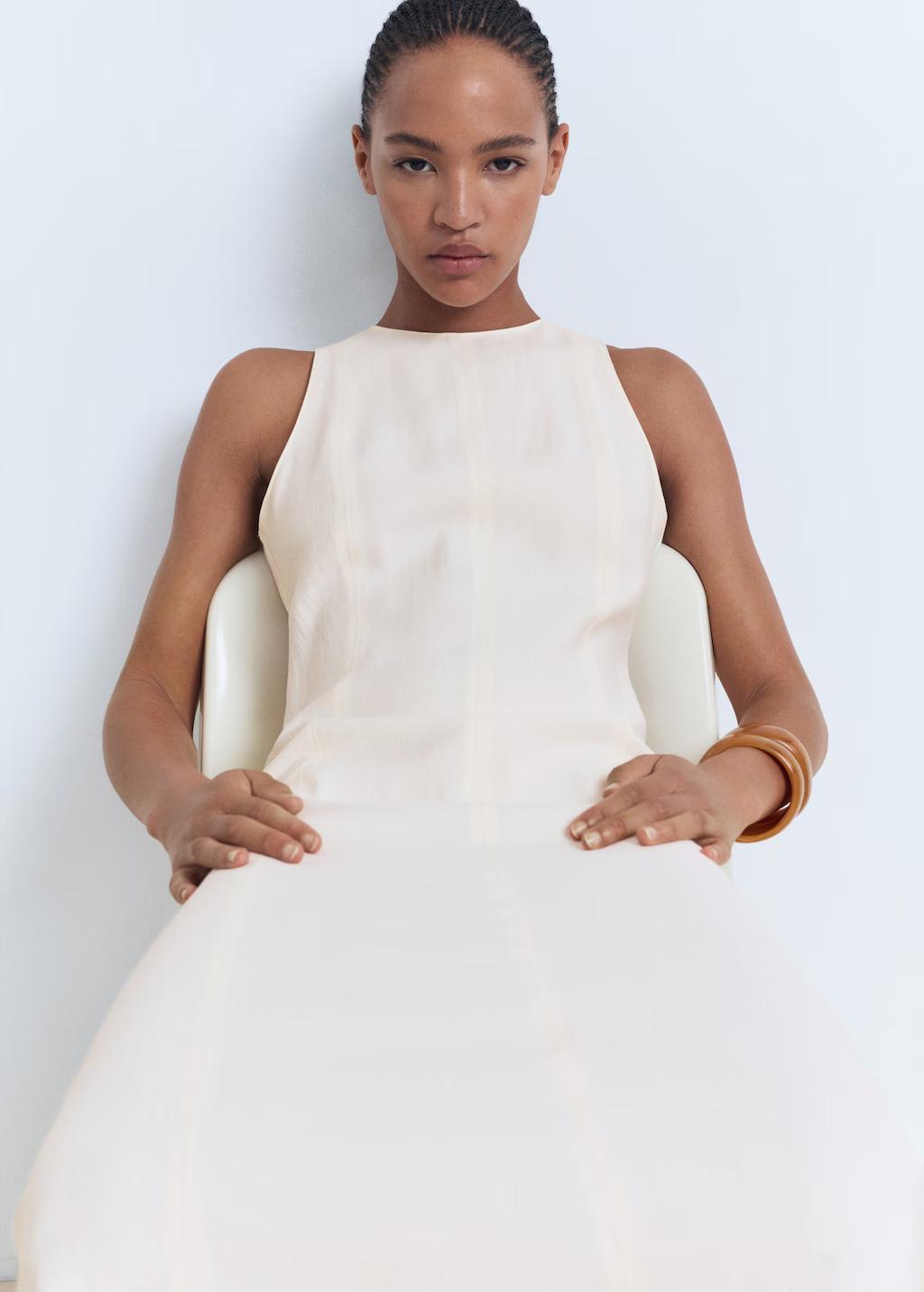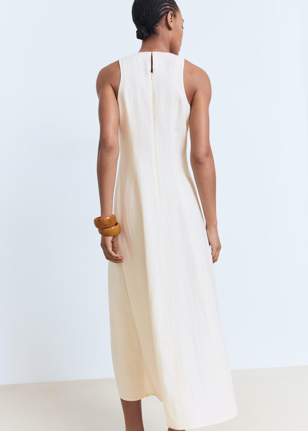 Diseño midi. Diseño evasé. Cuello caja. Sin mangas. Tirantes anchos. Cierre de cremallera y botón en la parte posterior. El color blanco está disponible en talla plus