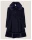 Too chic for words! Designed in a classic navy blue hue, this gorgeous coat features a shiny velvet trim with button fastenings to match. Finished with a detachable faux fur collar and tie detail to front. Blue
