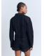 Tejido de algodón estilo tejano vaquero. Diseño entallado. Diseño corto. Cuello pico con solapa. Solapas con muesca. Manga larga con puños abotonados. Dos bolsillos de parche en el pecho. Cierre de botones en la parte delantera. Total look