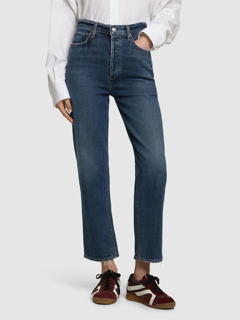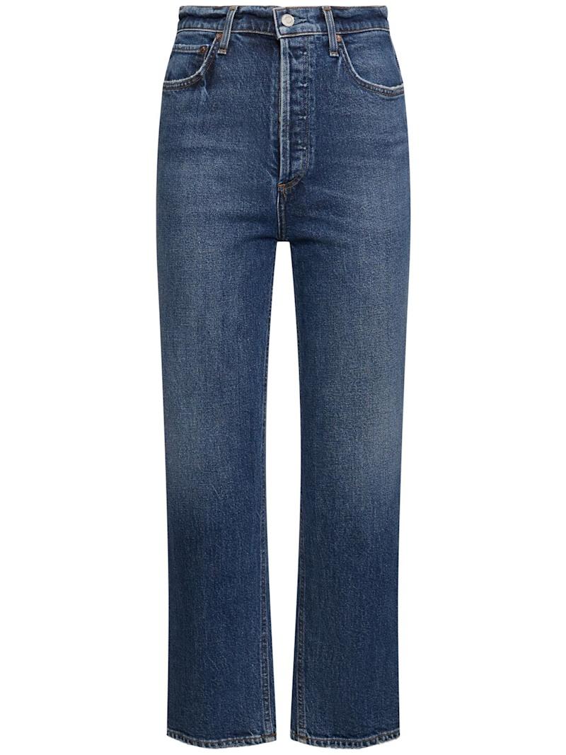 90's收紧腰部短款牛仔裤 - 靛蓝色 - 女士 - Agolde - 正面隐藏式纽扣开合.
