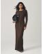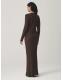 Chocolate Brown Ribbed Long Sleeve Button Down Midi Dress