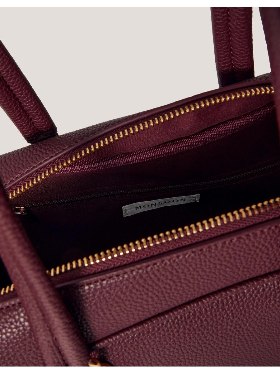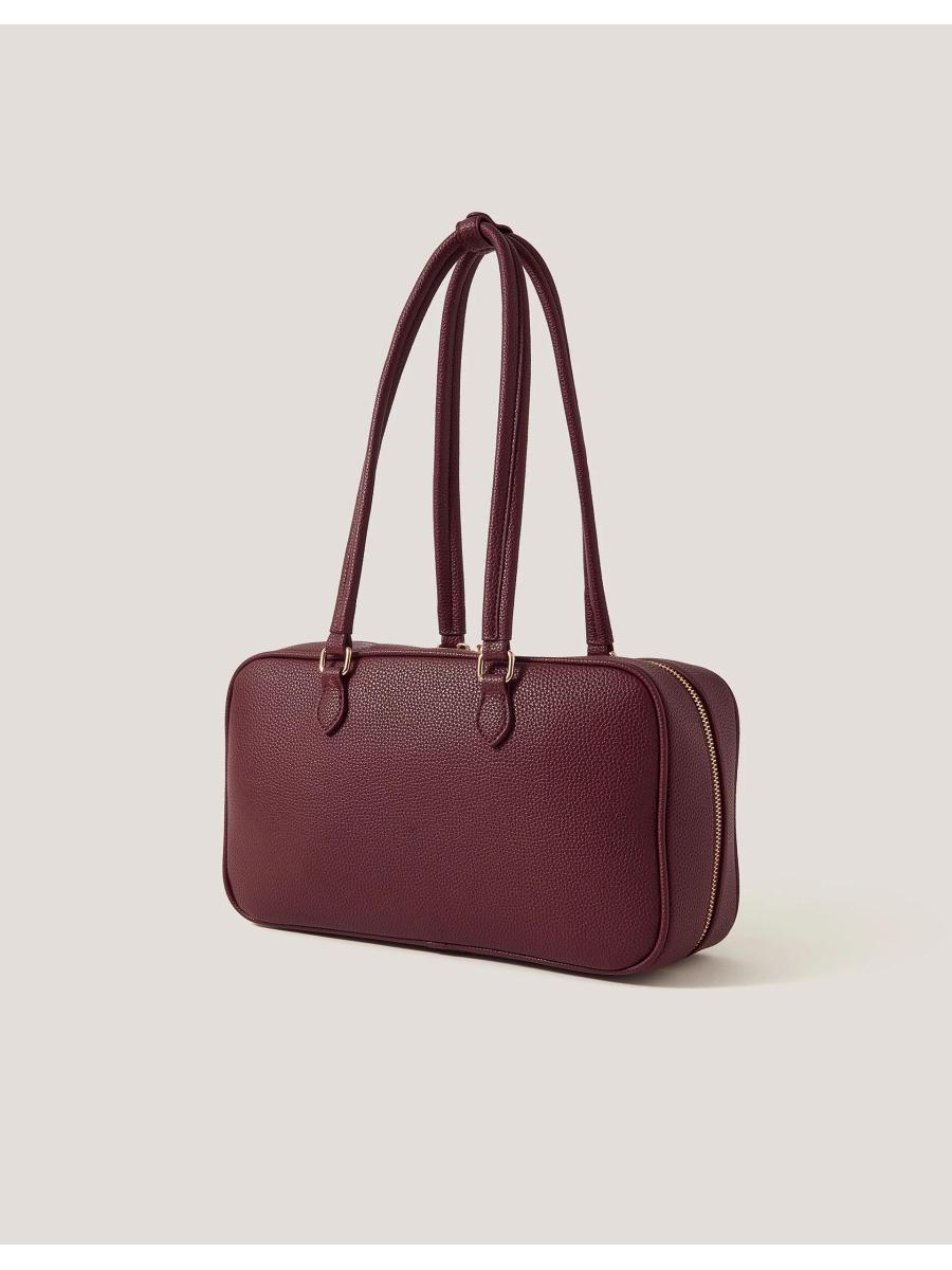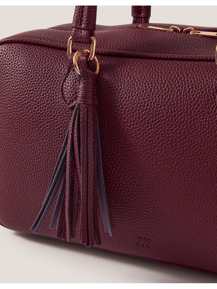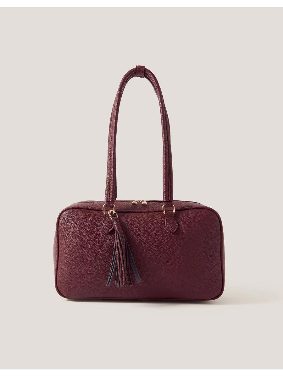 Two words: Super chic. Soaked in the 'it' colour of the season, this bowler bag is crafted of faux leather with two shoulder straps, a zip fastening and tassel charm.