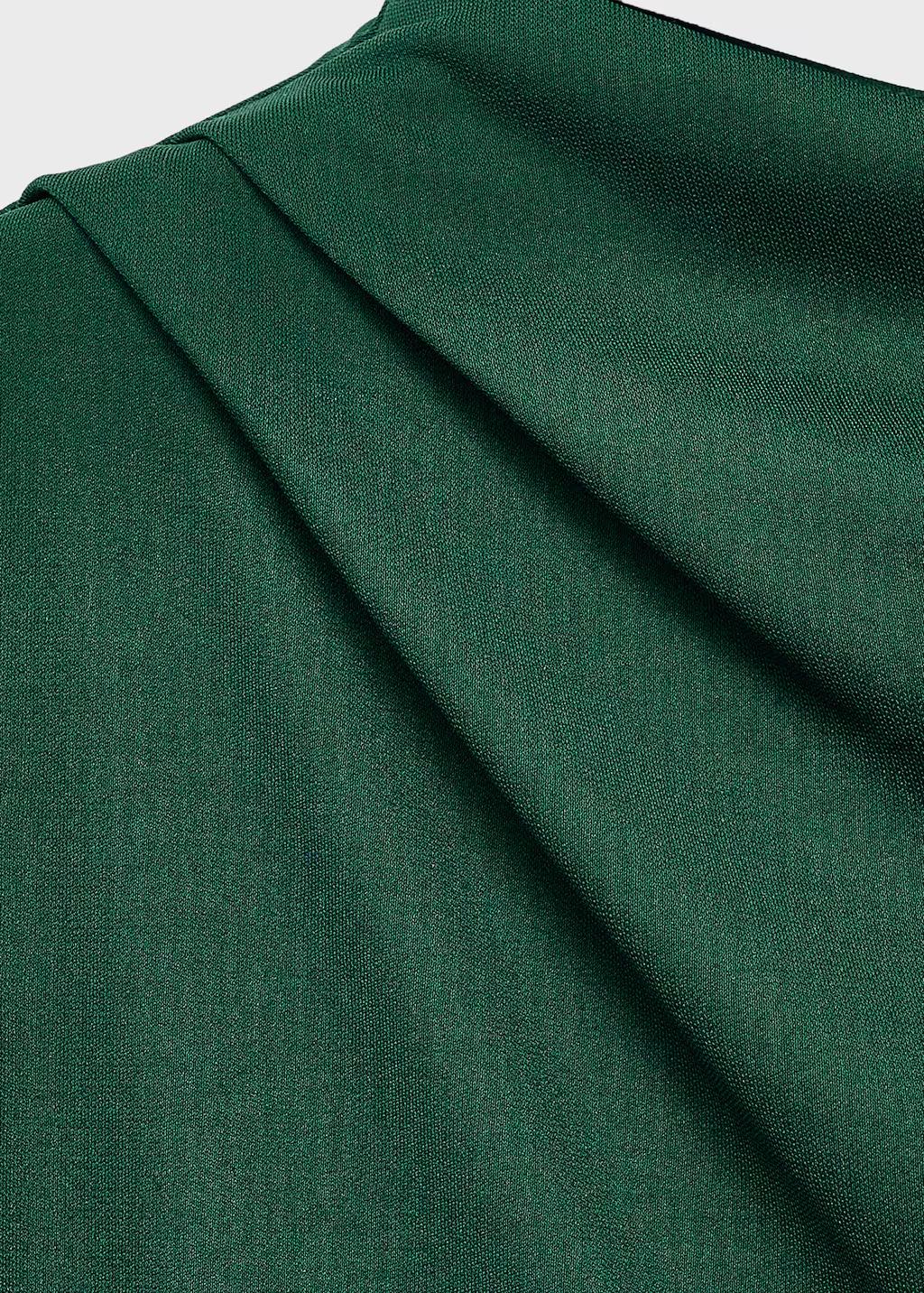 Diseño largo. Diseño recto. Cuello perkins. Sin mangas. Escote drapeado. Detalle fruncido en la cintura. Cierre de cremallera en la parte posterior. Exclusivo Online