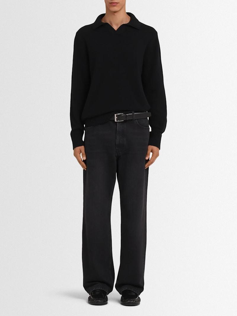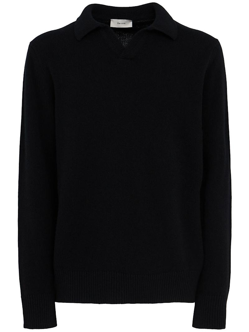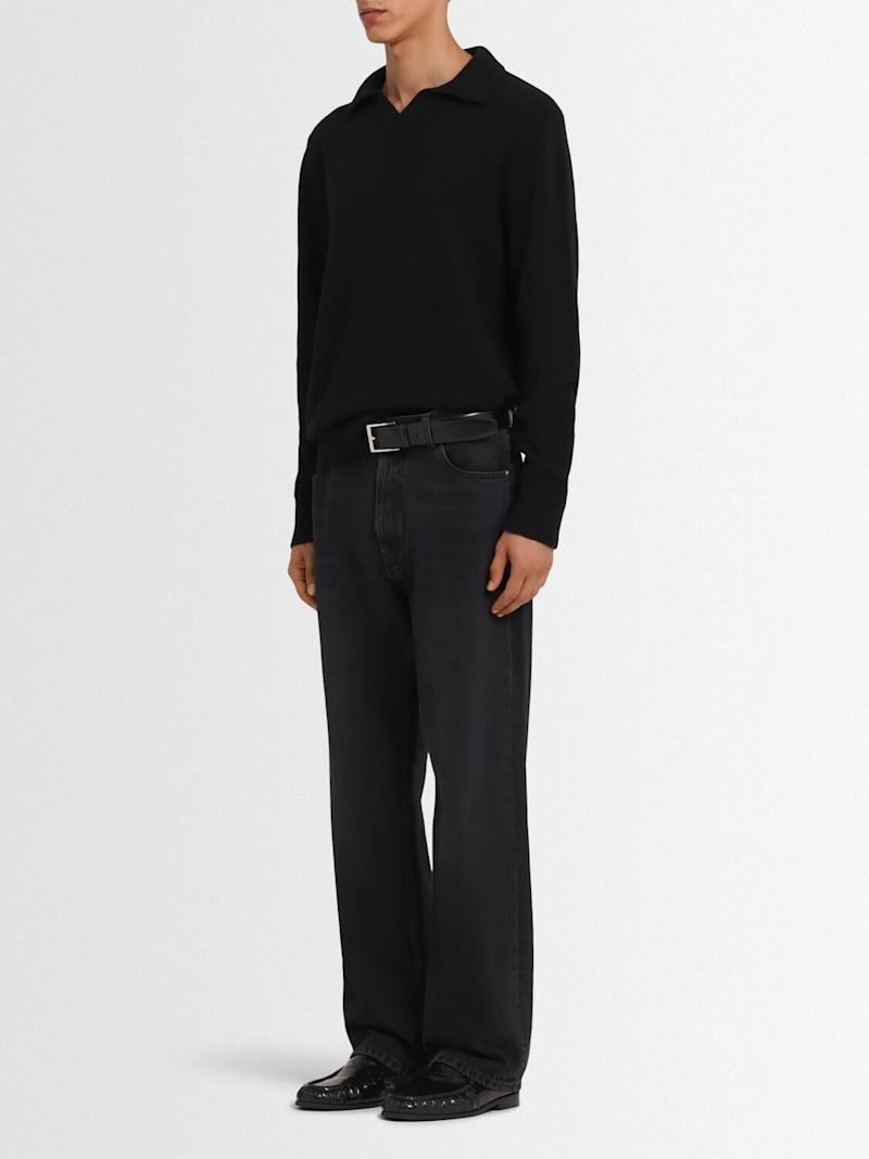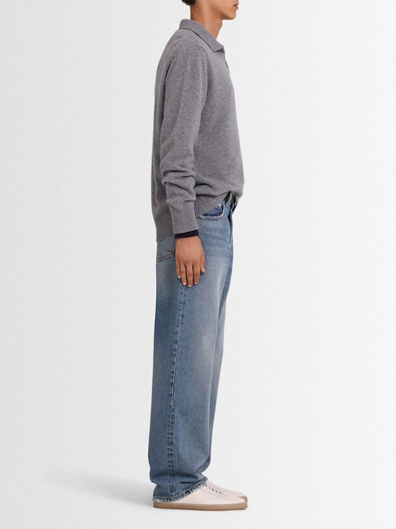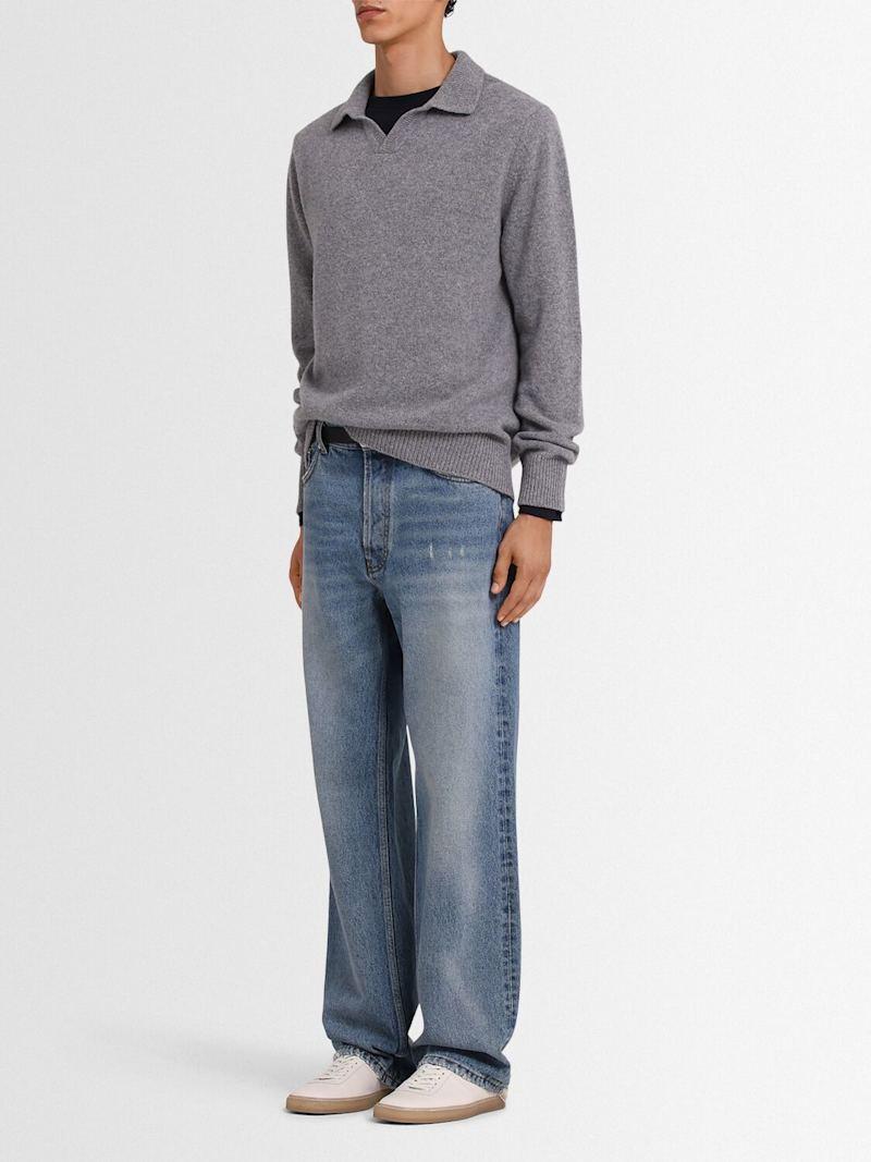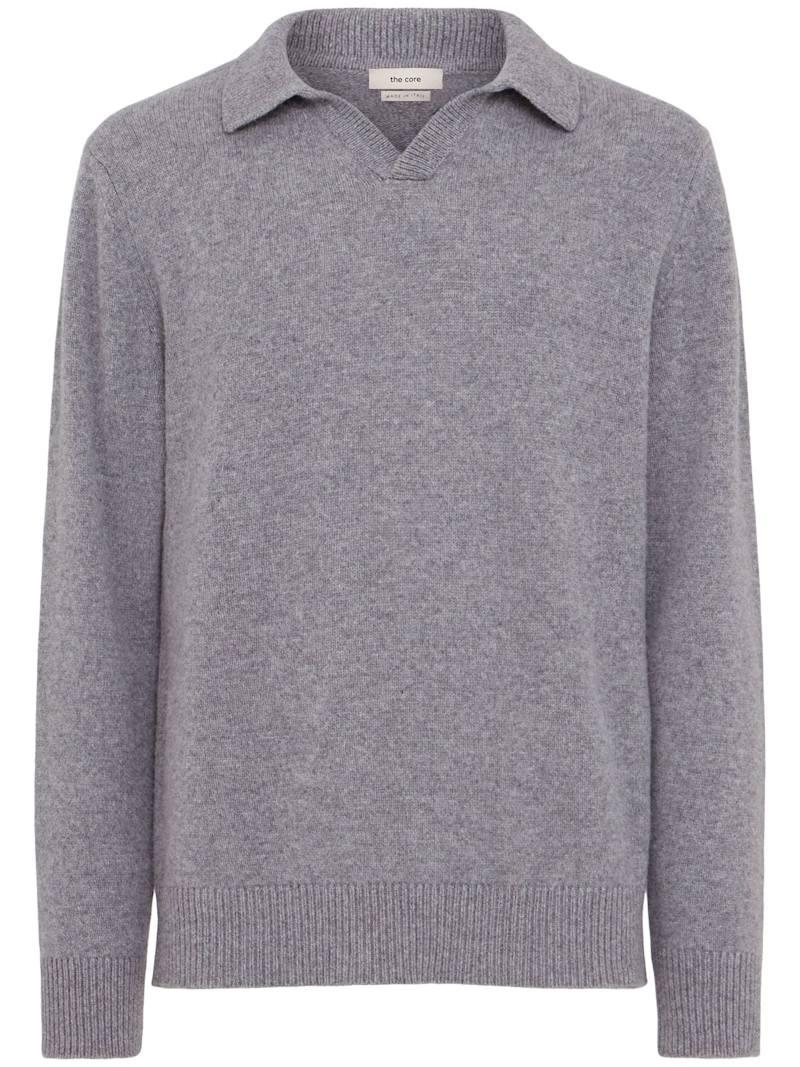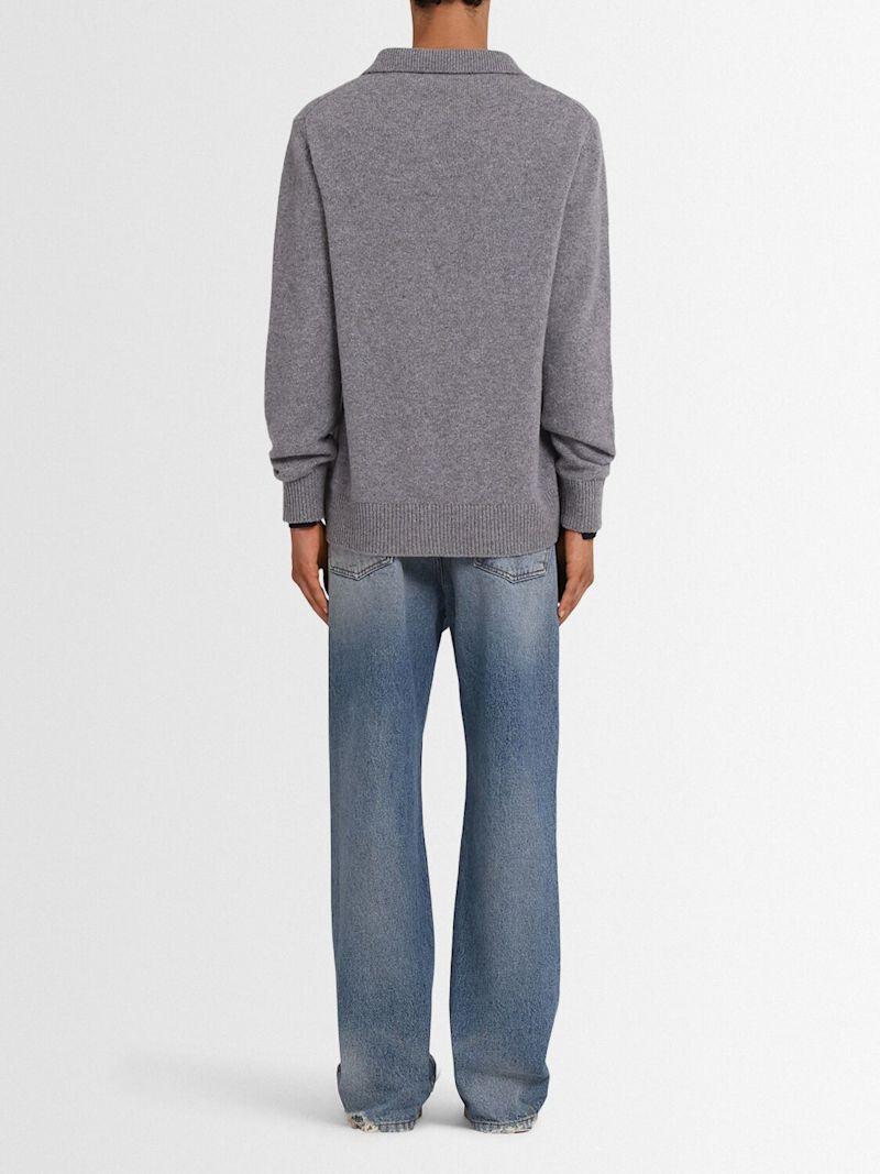 羊毛针织Polo领毛衣 - 灰色 - 男士 - The Core - 精细度:5 Gauge.