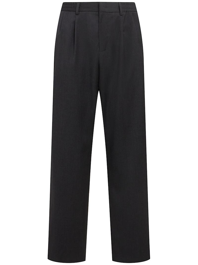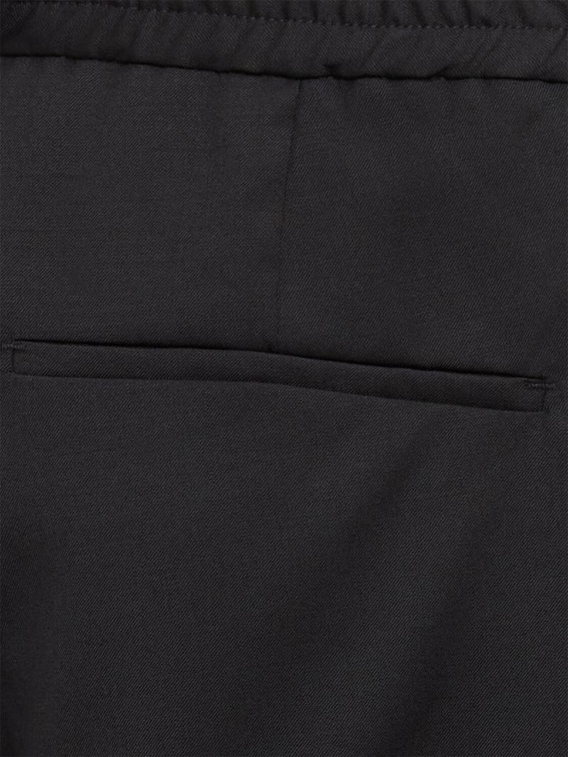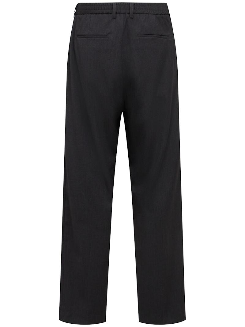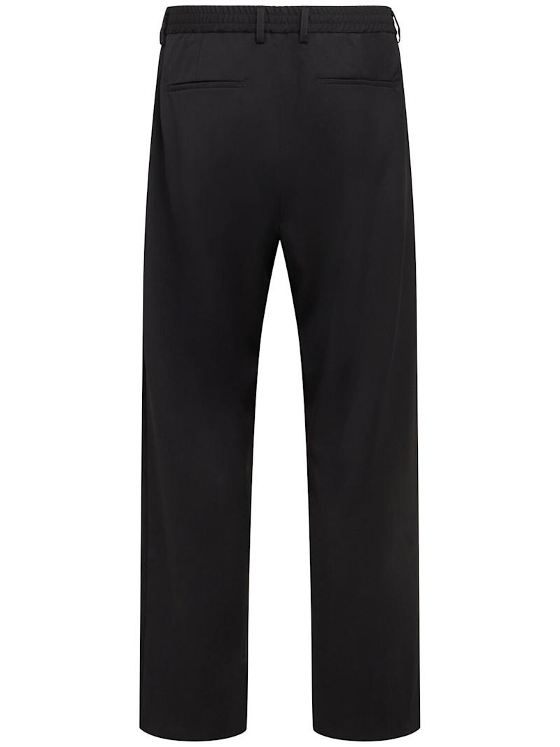 打褶羊毛斜纹裤子 - 黑色 - 男士 - The Core - 弹性腰头.