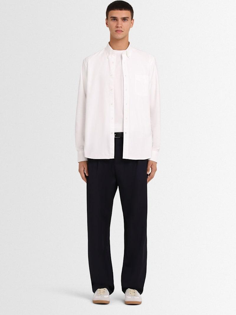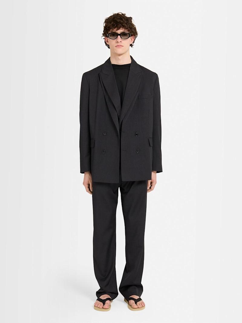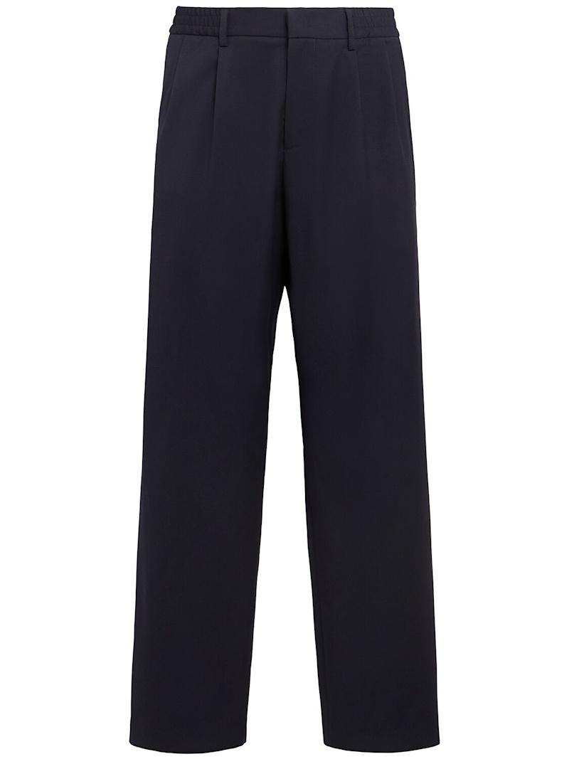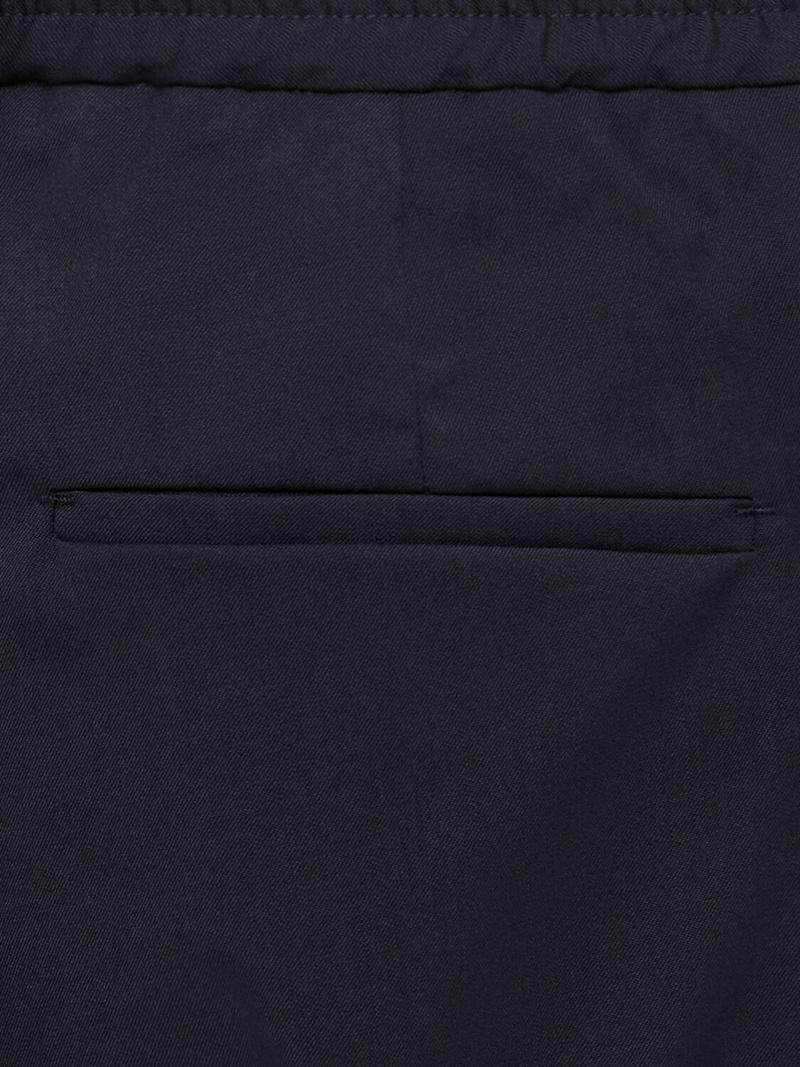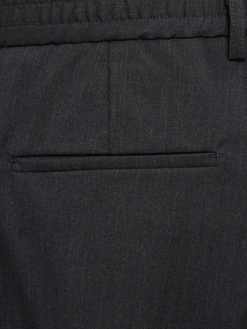 打褶羊毛斜纹裤子 - 黑色 - 男士 - The Core - 弹性腰头.