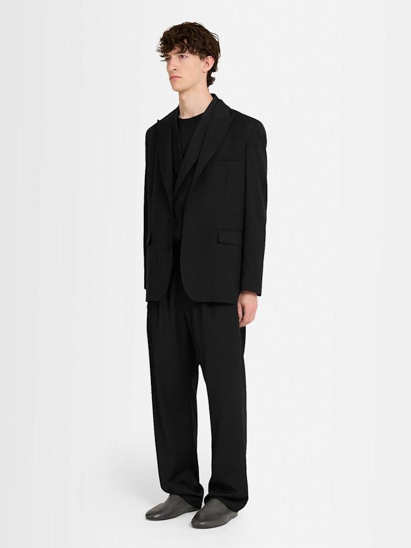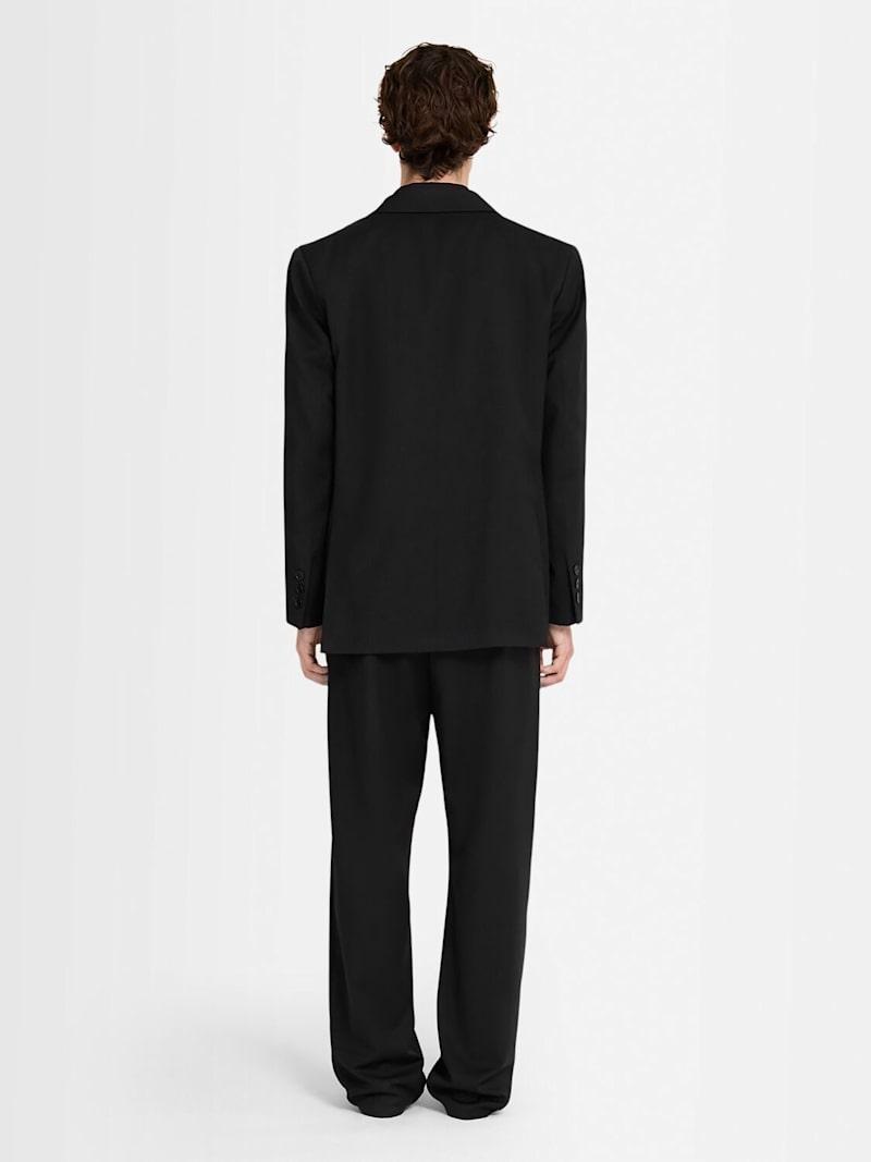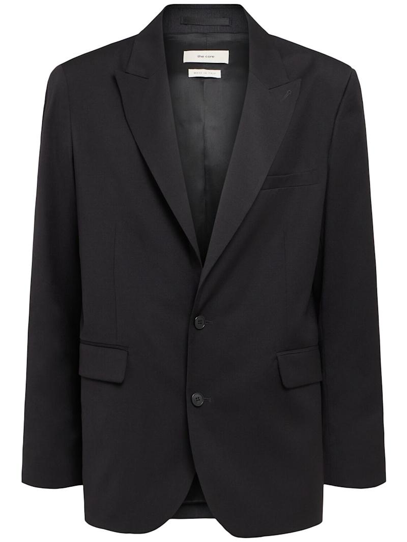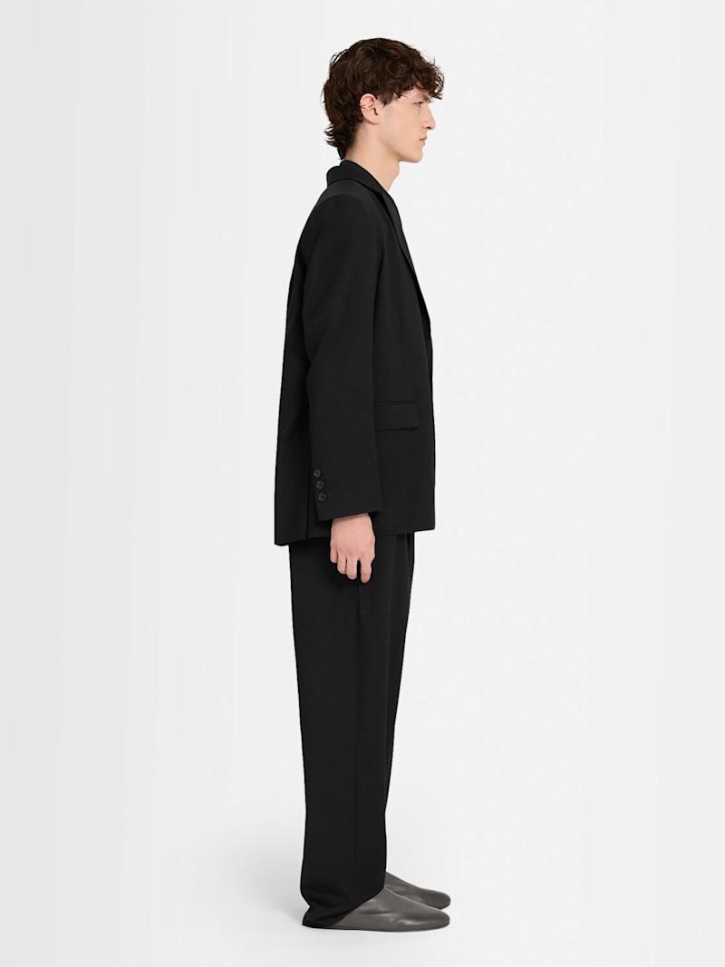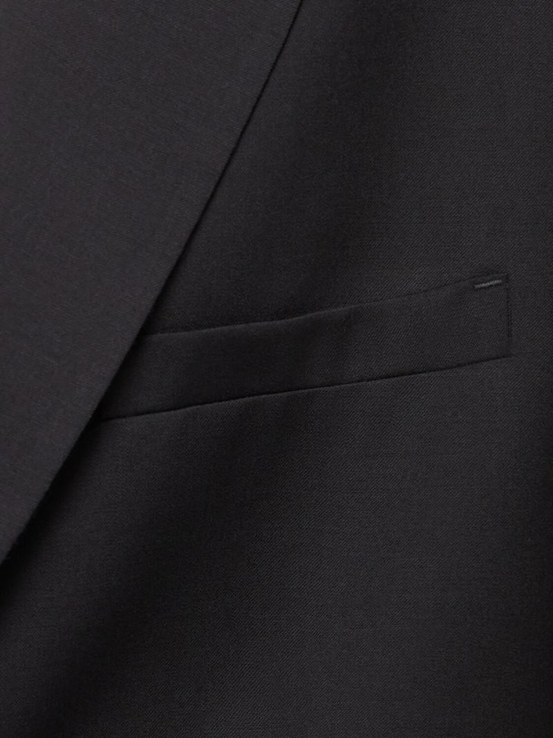 单排扣羊毛斜纹西服夹克 - 黑色 - 男士 - The Core - 正面纽扣开合.