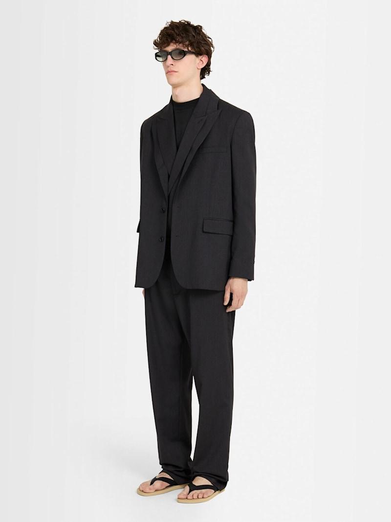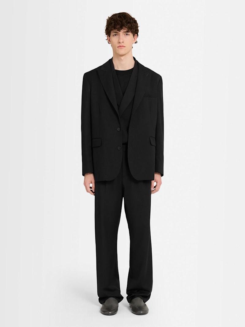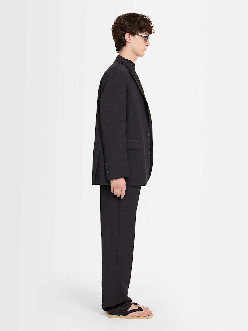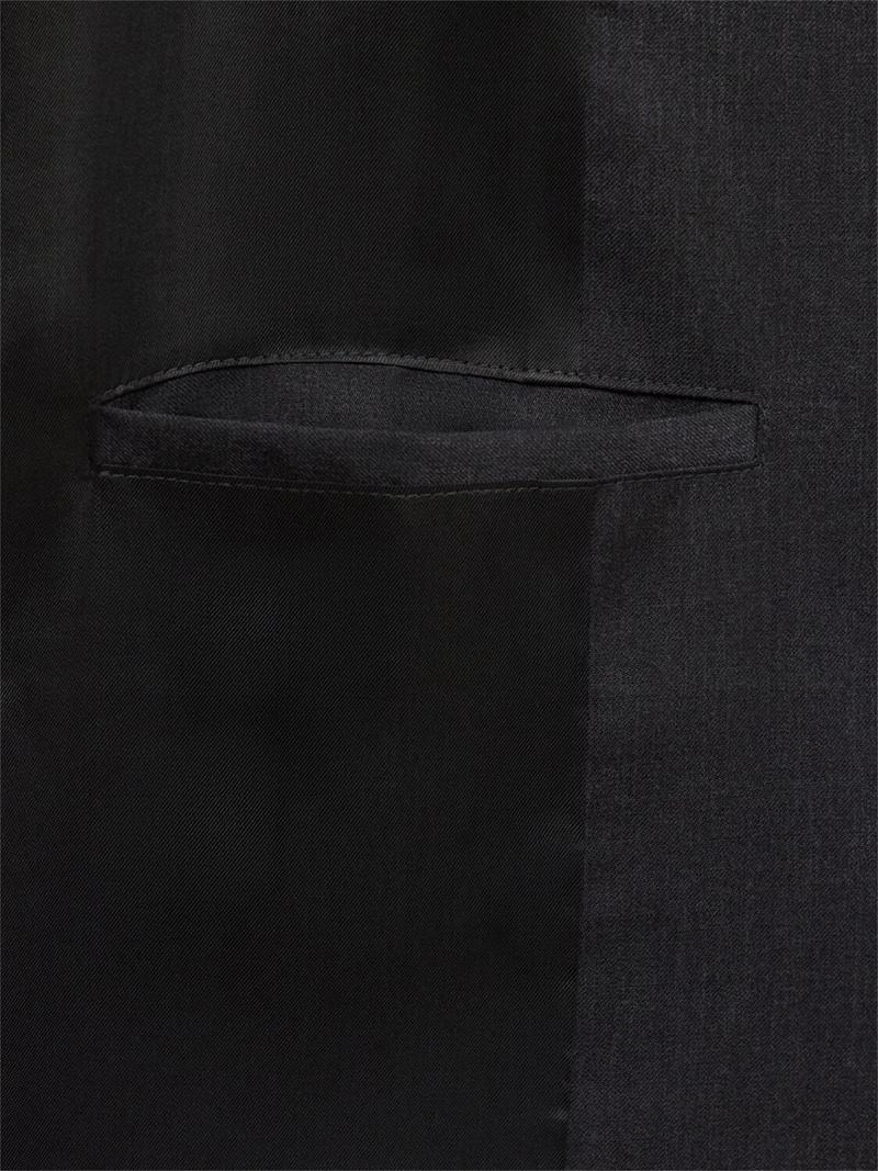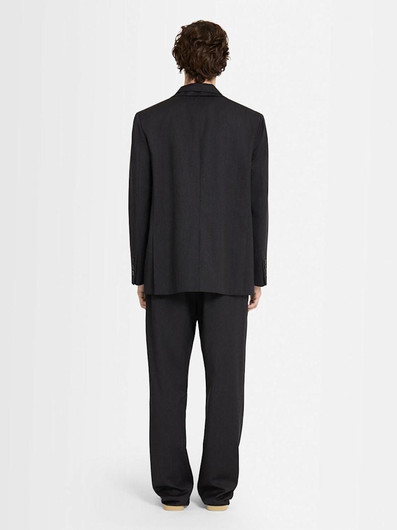 单排扣羊毛斜纹西服夹克 - 黑色 - 男士 - The Core - 正面纽扣开合.