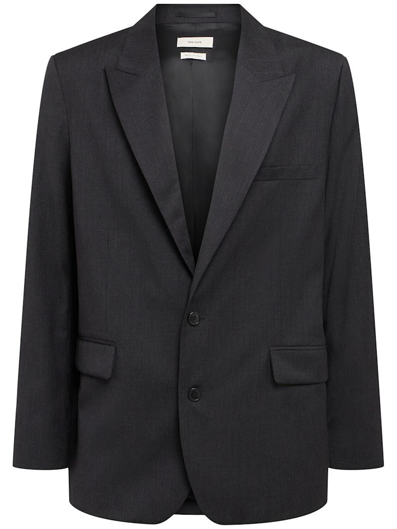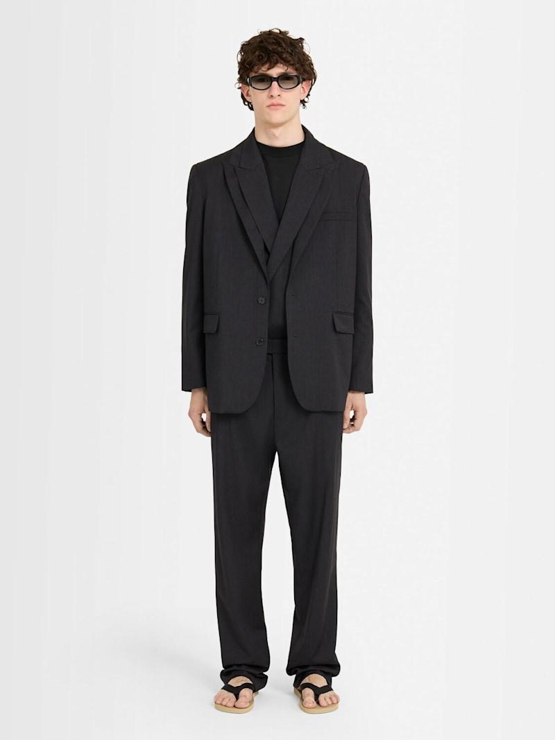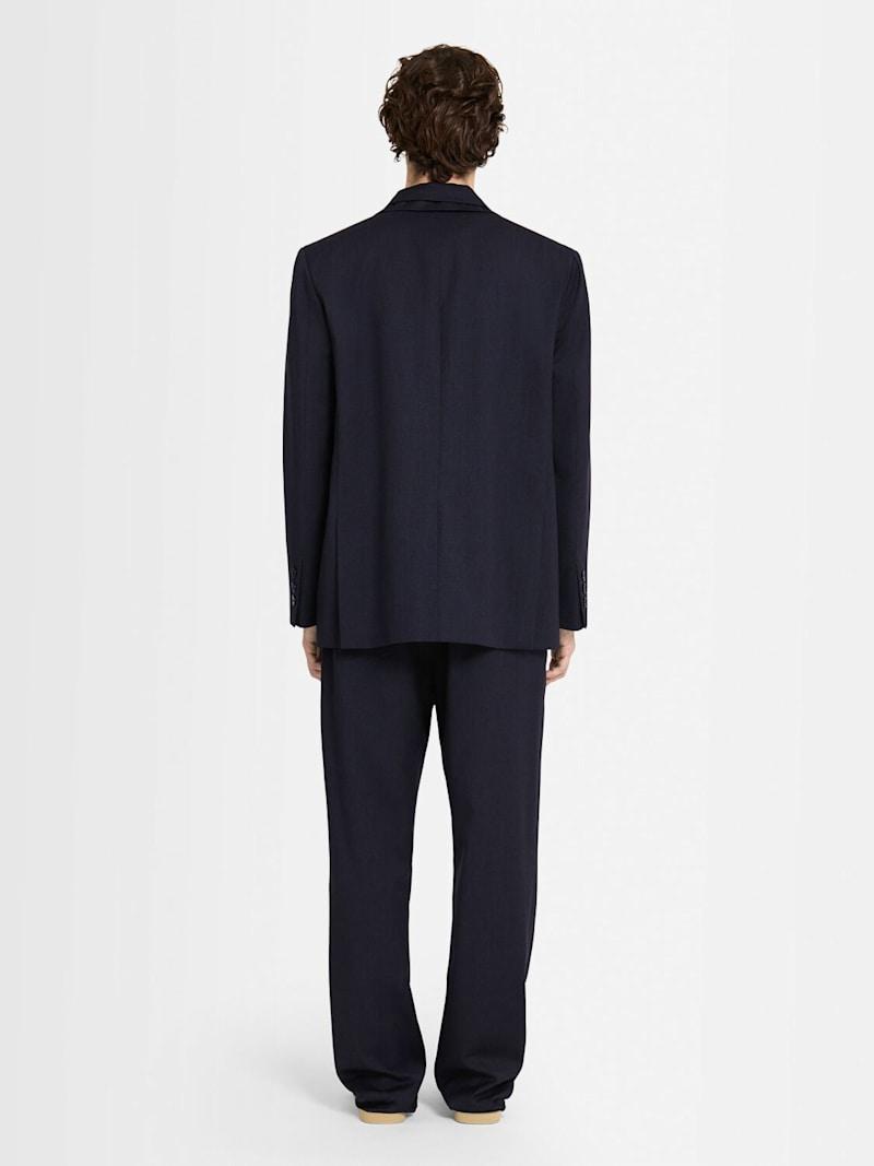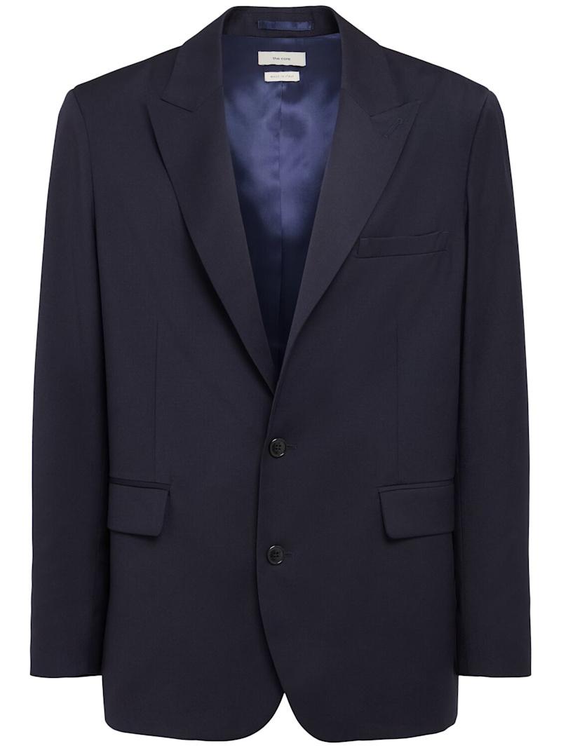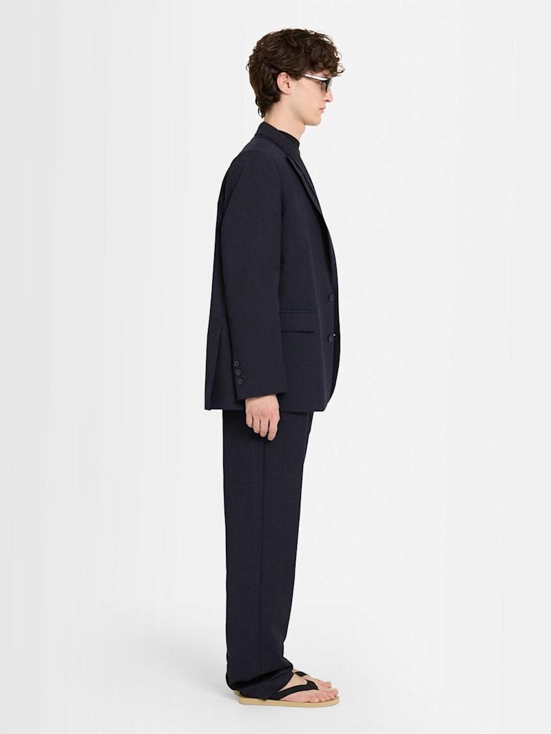 单排扣羊毛斜纹西服夹克 - 黑色 - 男士 - The Core - 正面纽扣开合.