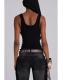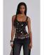 Hand sequin beaded ribbed vest top in black.