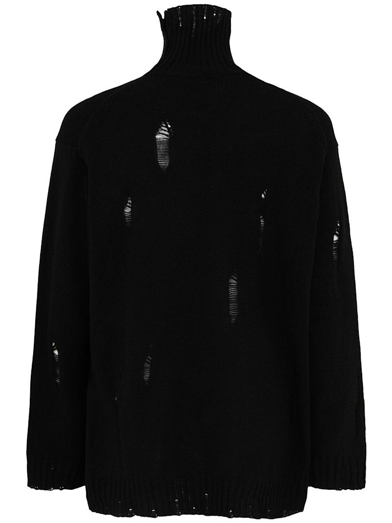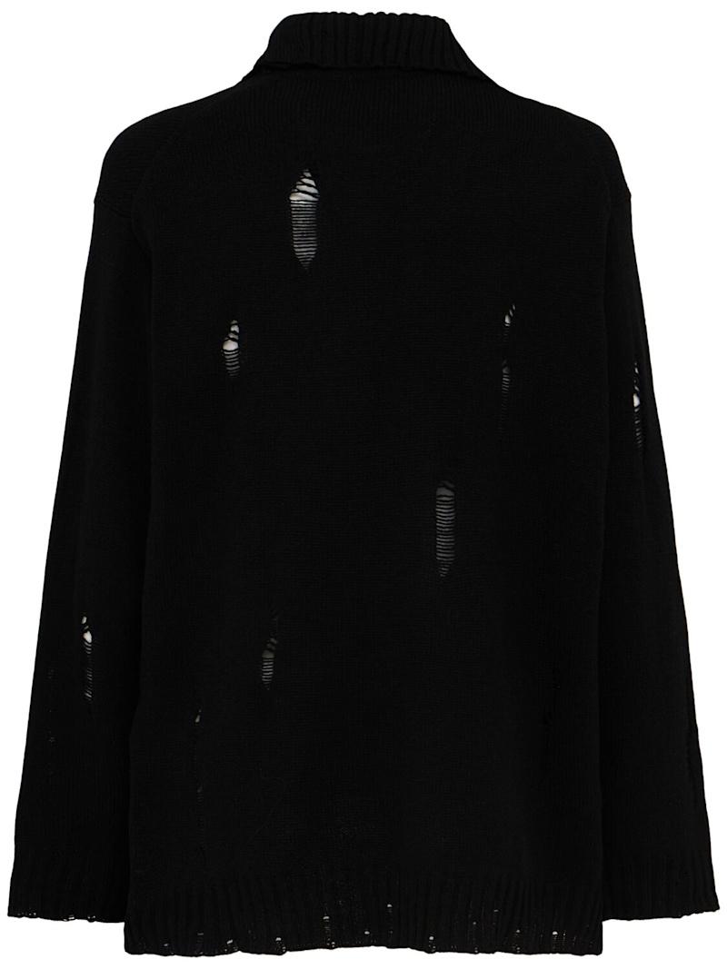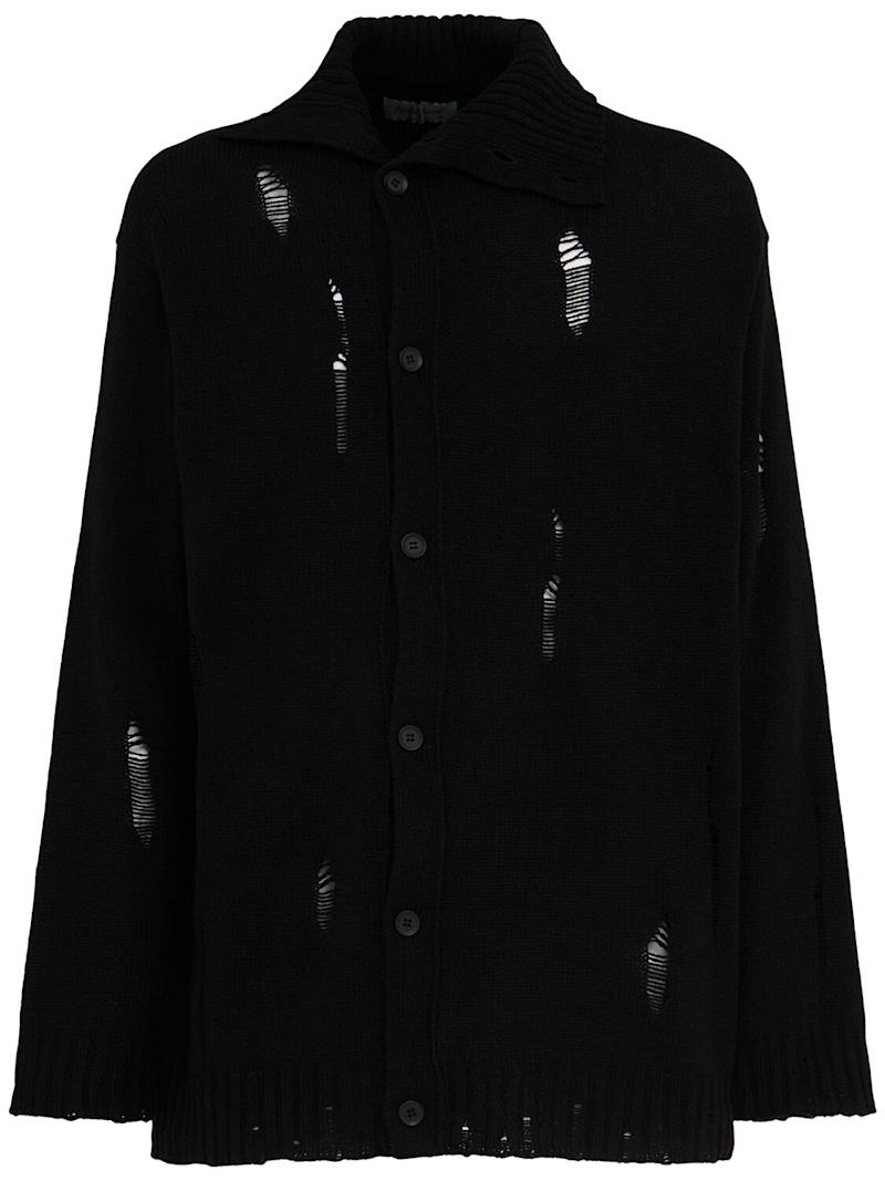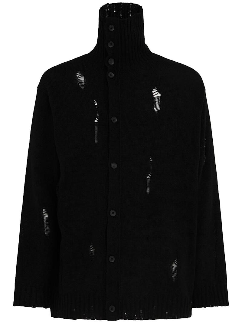 破洞高领羊毛开衫 - 黑色 - 男士 - Yohji Yamamoto - 正面纽扣开合.