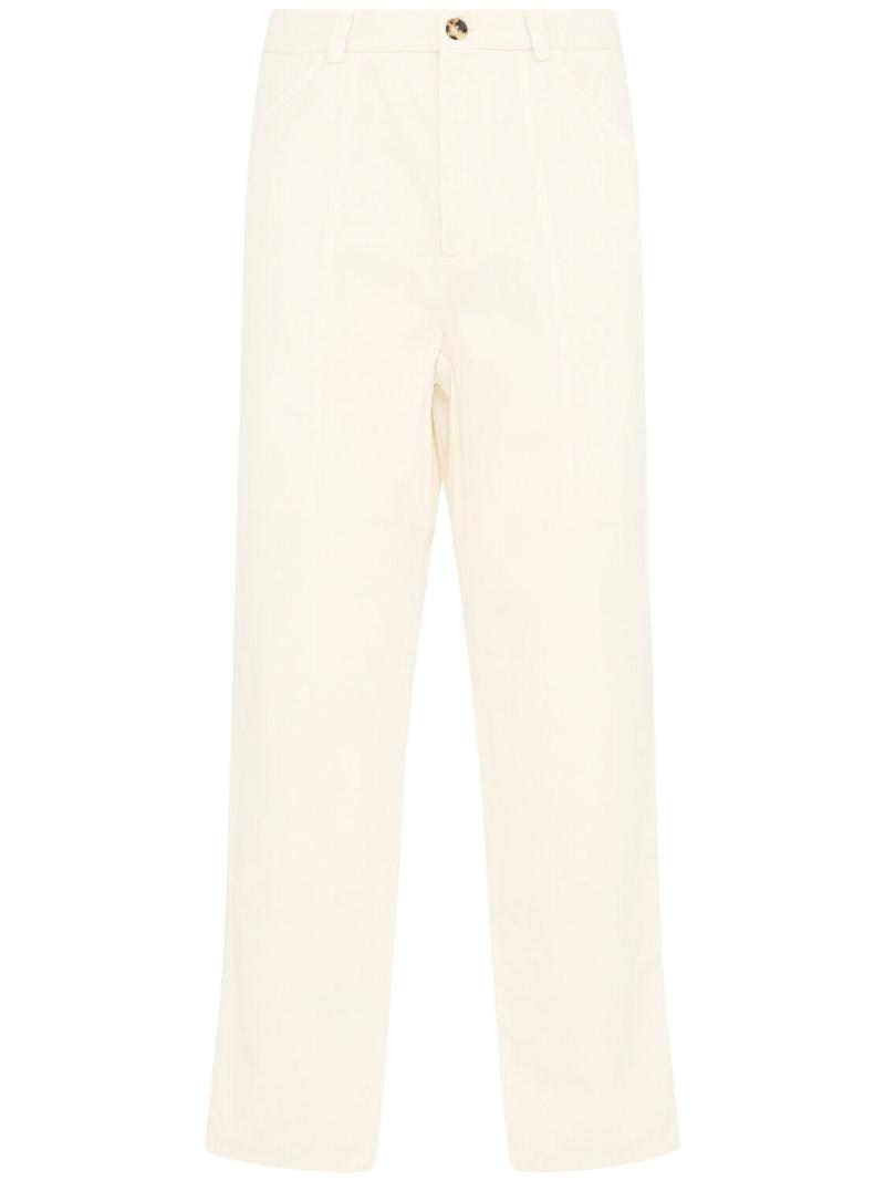 扎染棉质华达呢裤子 - English White - 男士 - Brunello Cucinelli - 正面纽扣和隐藏式拉链开合.