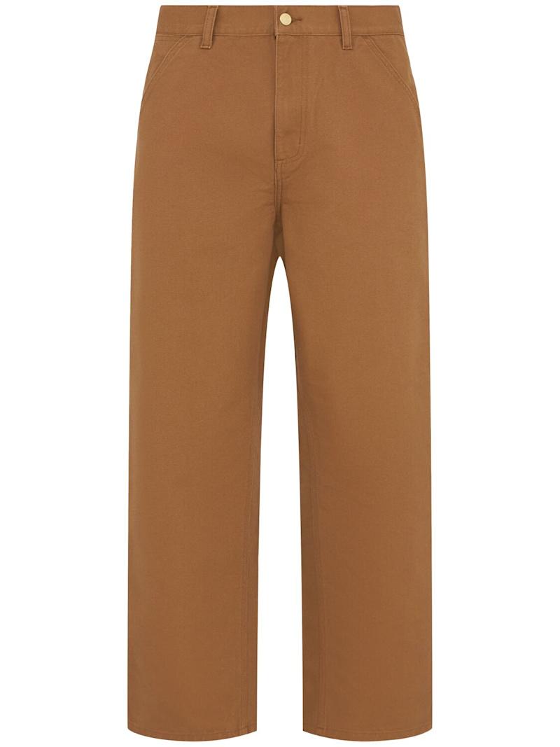'Dearborn'单膝帆布裤子 - Hamilton棕色 - 男士 - Carhartt WIP - 正面纽扣和隐藏式拉链开合.