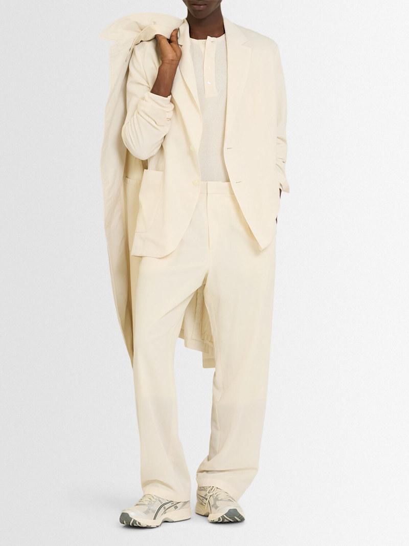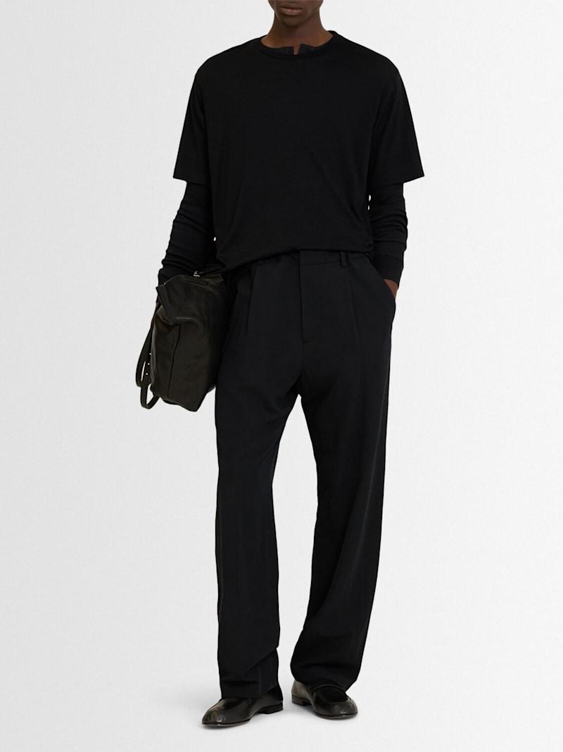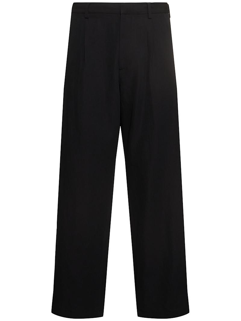 Viyella轻薄棉&羊毛裤子 - 黑色 - 男士 - Auralee - 腰头抽绳.