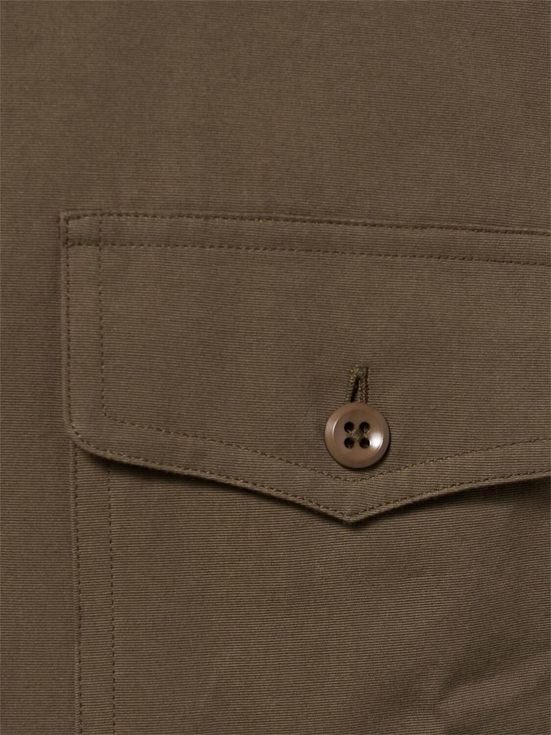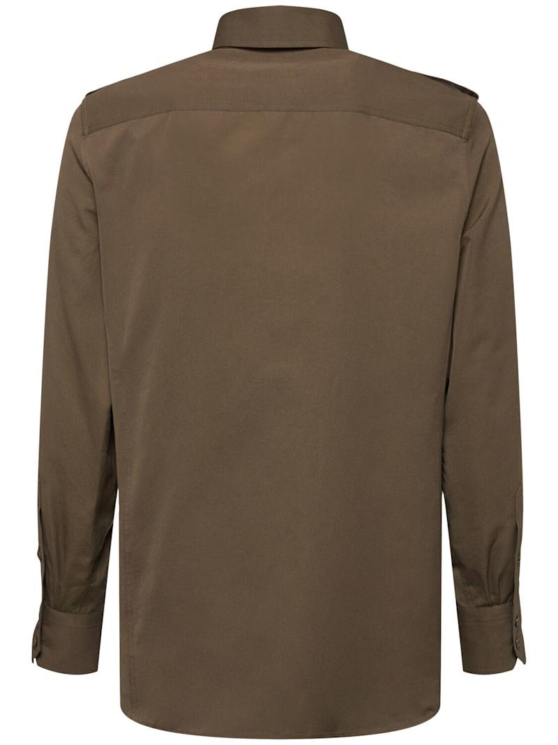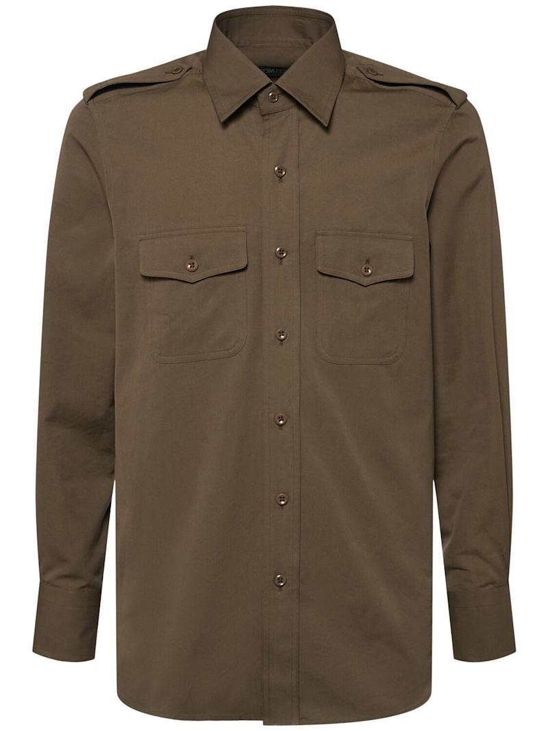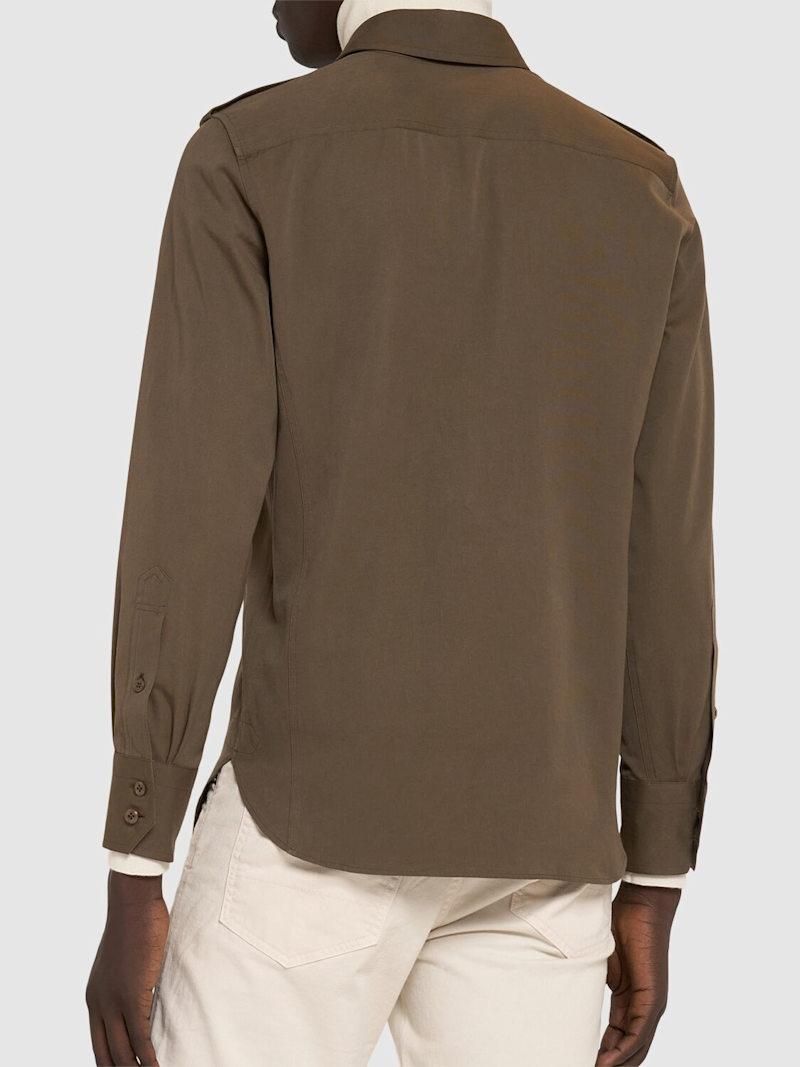 棉&真丝罗缎军风衬衫 - 军绿色 - 男士 - Tom Ford - 正面纽扣开合.