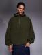ASOS DESIGN extreme oversized quarter zip funnel neck fleece hoodie in dark green