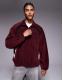 ASOS DESIGN extreme oversized quarter zip funnel neck fleece sweatshirt with raglan sleeve in burgundy