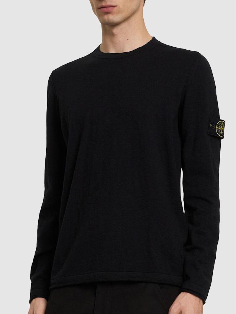 圆领棉质毛衣 - 黑色 - 男士 - Stone Island - 罗纹领口、袖口和下摆.
