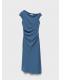 Diseño midi. Diseño evasé. Cuello asimétrico. Sin mangas. Detalle drapeado en la cintura. Cierre de cremallera lateral