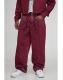 Relaxed Fit Belted Rhinestone Red Washed Jeans