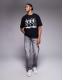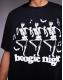 Dancing skeleton graphic and text print on front