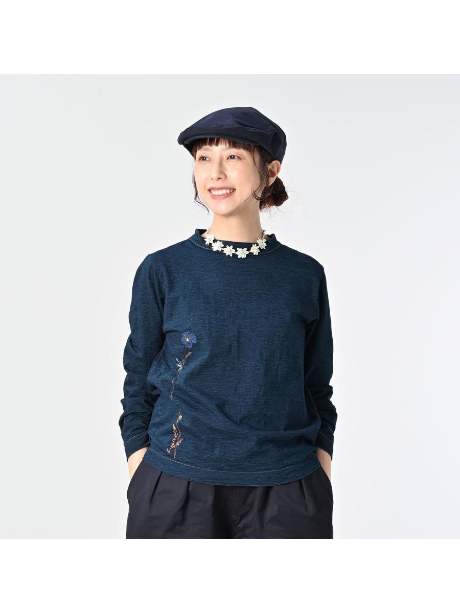アネモネ刺繍の四角Tシャツ(再び・インディゴ)