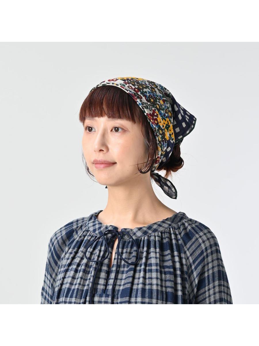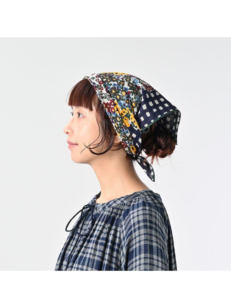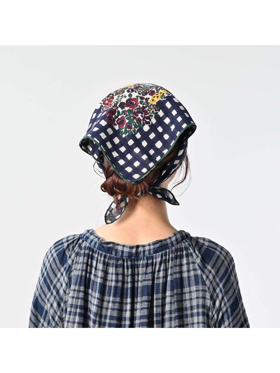スーピマ綾のギンガムチェックフラワーバンダナ