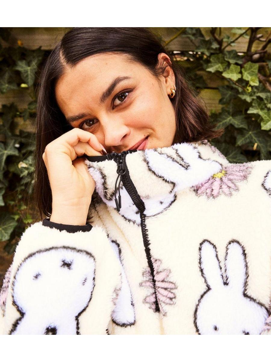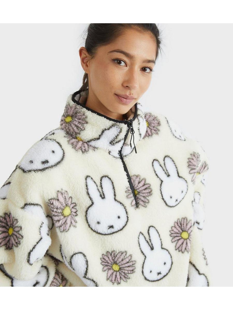 Skinnydip White Miffy Flower Pattern Longline Fleece