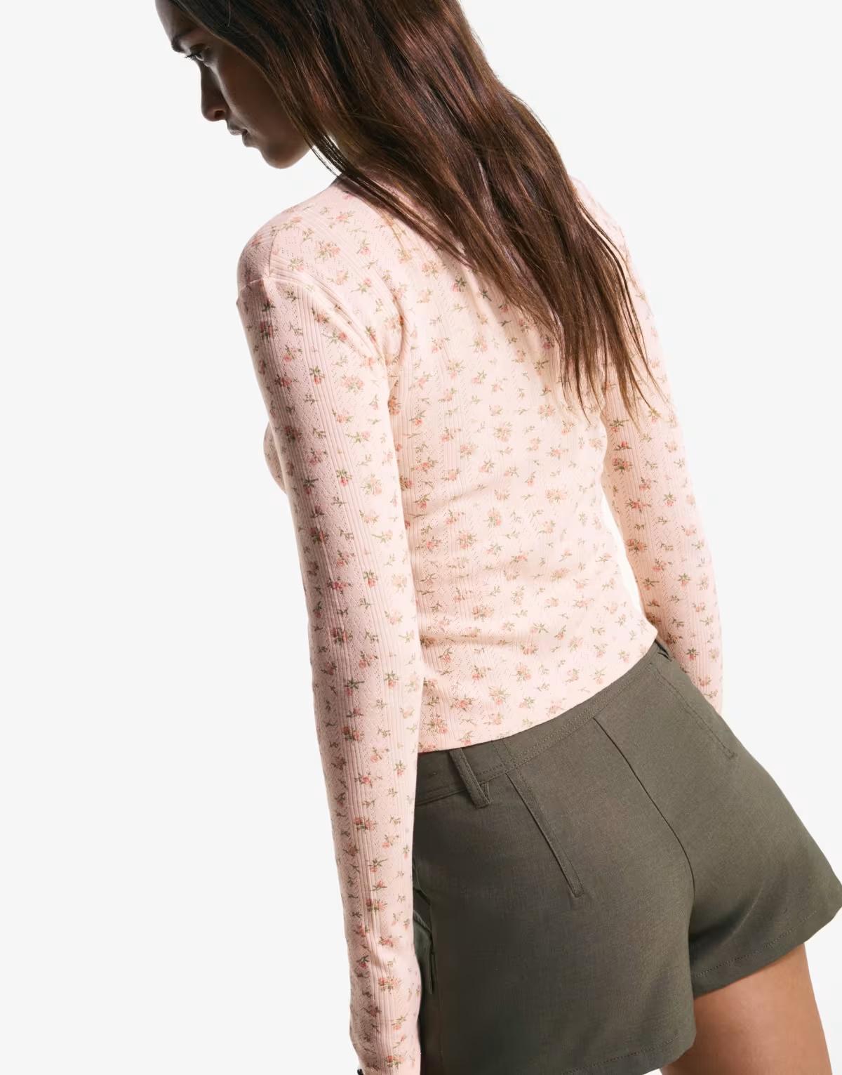 Bershka Printed openwork cardigan in pink