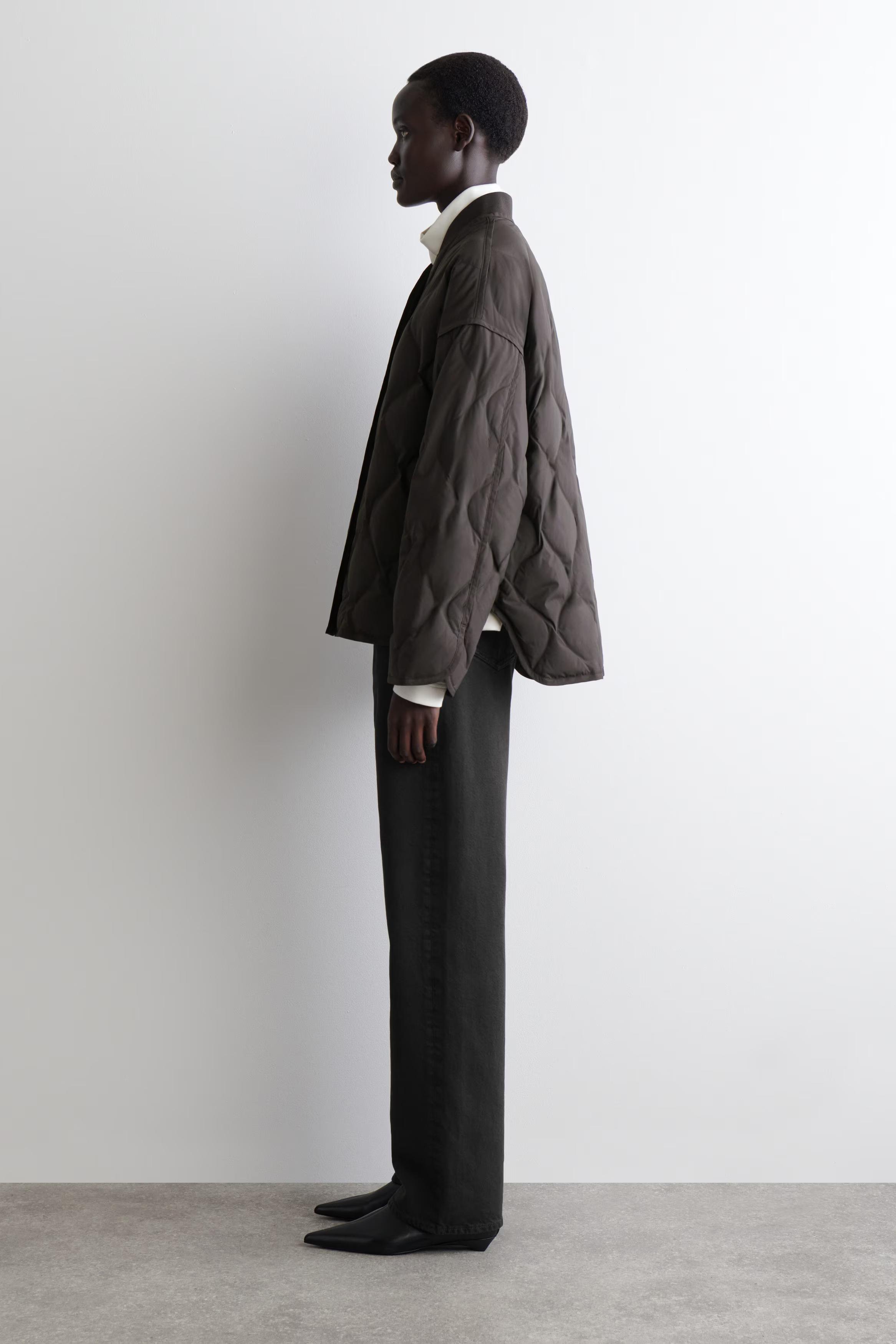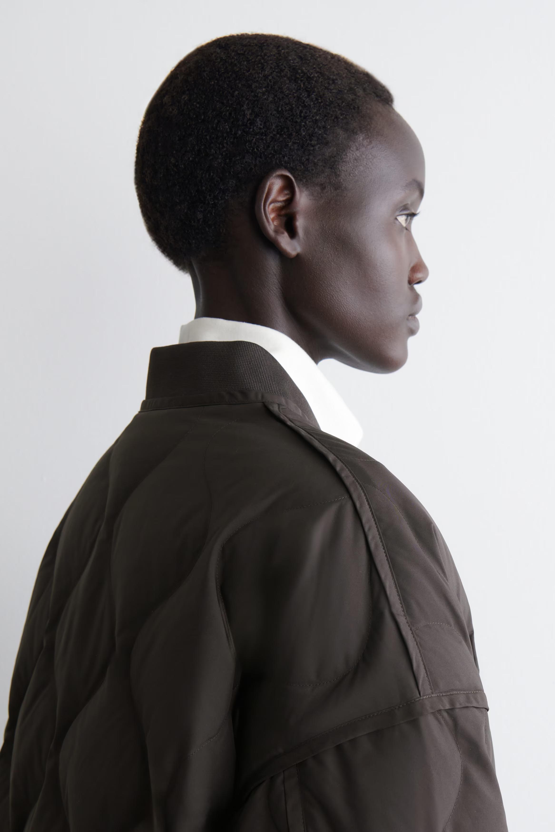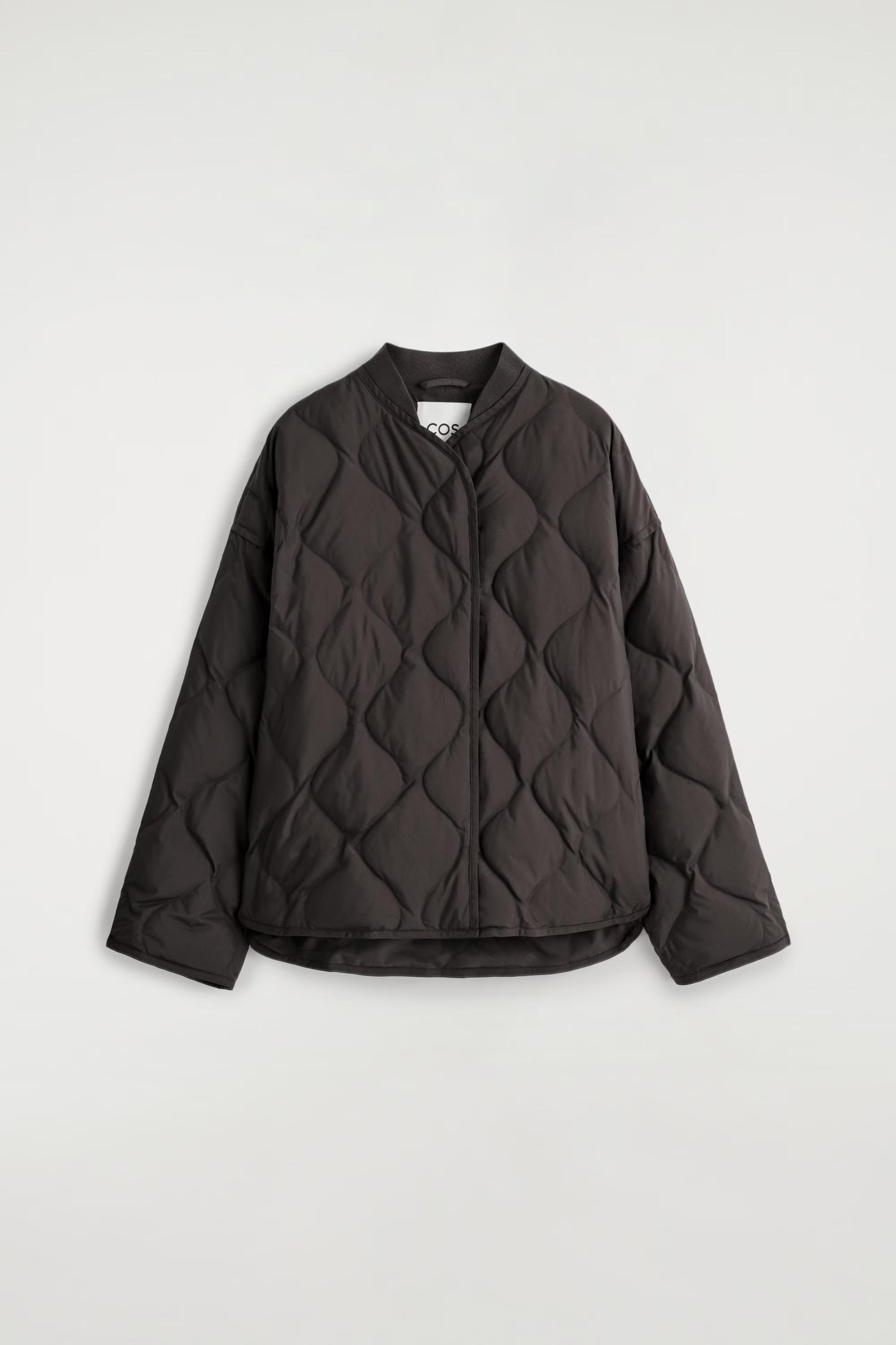 Designed for the cooler months, this modern jacket is filled with an RDS down and feather padding that's diamond-quilted for even heat distribution. It's cut in an oversized shape and has a ribbed collar, a number of pockets and a stepped hem at the back. The rich espresso hue will style effortlessly with the rest of your wardrobe.\u0026nbsp;\u0026nbsp;Oversized fitSnap-stud closureRecycled polyester is polyester made from PET bottles or end-of-life textile waste. The PET bottles or textile waste is mechanically recycled and processed into new yarn\u0026nbsp;Shell \u0026amp; lining: 100% Recycled polyester. Padding: 80% RDS Down, 20% RDS Feather. Excluding trims / Machine wash\u0026nbsp;Back length of size S is 68.5cm / Model wears a size S