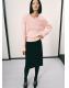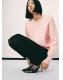 Confeccionado en tejido de punto medio, este diseño recto presenta cuello pico y manga larga
