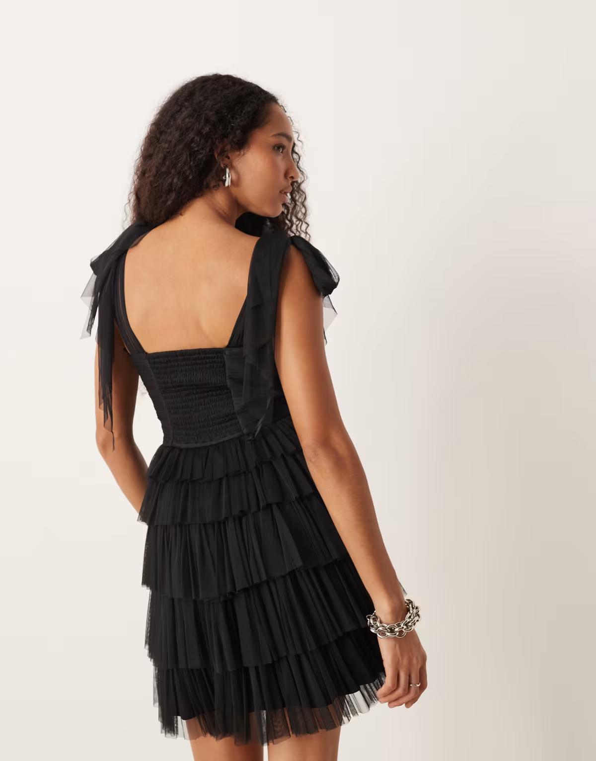 BrandLondon-based label Lace & Beads know sparkly dresses are always a good idea, so create the perfect handcrafted party pieces for your BNO. Expect standout embellishment, crop tops and tulle separates that never fail to impress.Size & FitModel's height: 176cm / 5' 9.5Still unsure what size to get? Check out our size guide.