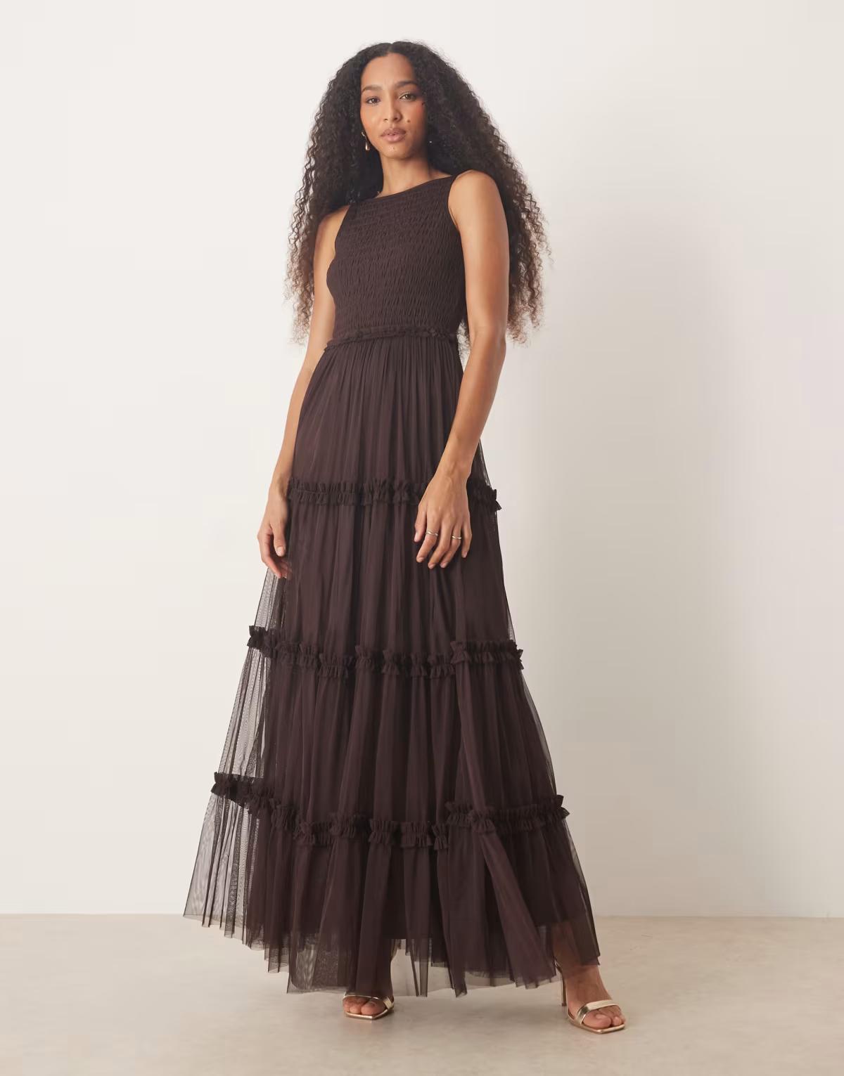 BrandLondon-based label Lace & Beads know sparkly dresses are always a good idea, so create the perfect handcrafted party pieces for your BNO. Expect standout embellishment, crop tops and tulle separates that never fail to impress.Size & FitModel's height: 176cm / 5' 9.5Still unsure what size to get? Check out our size guide.