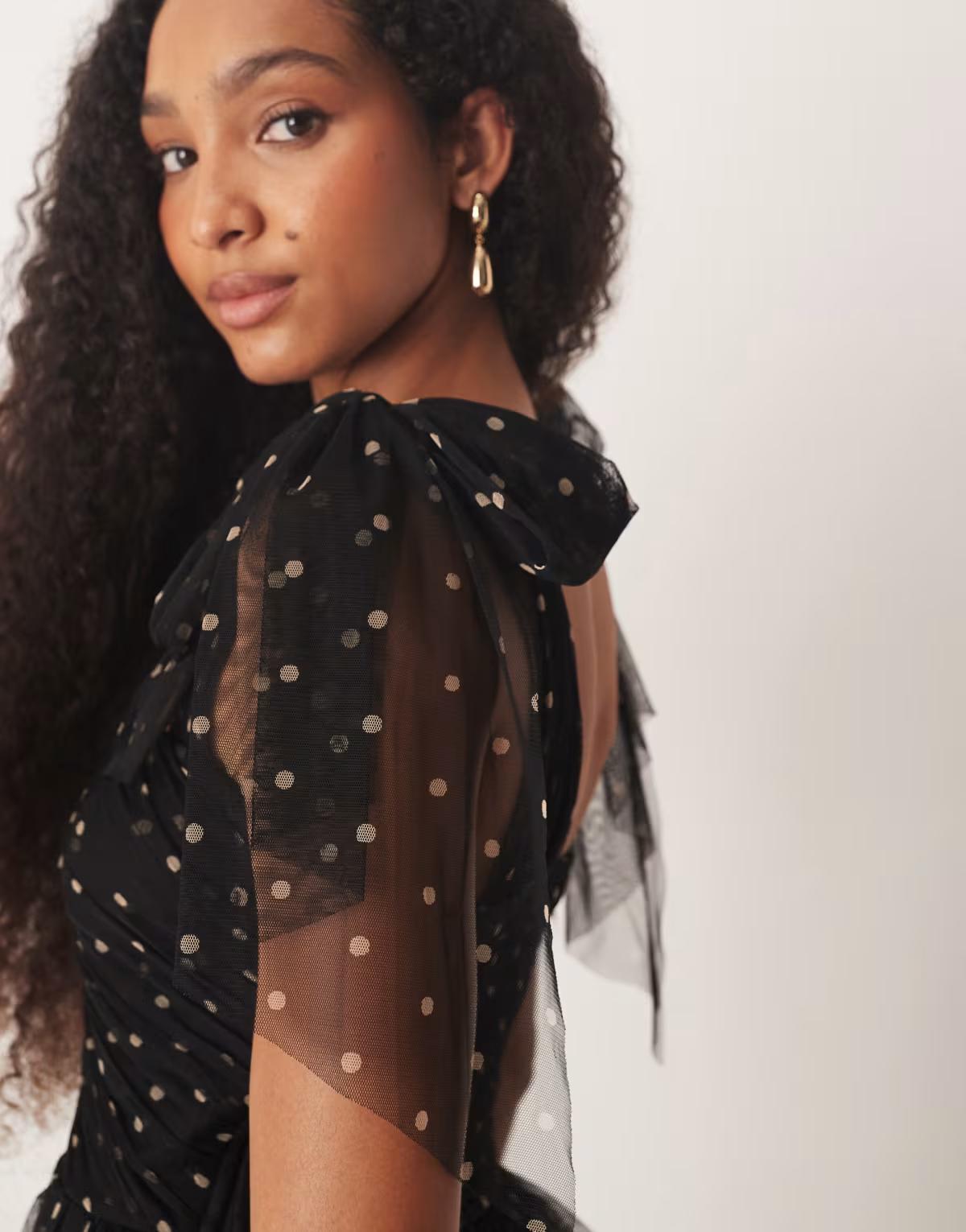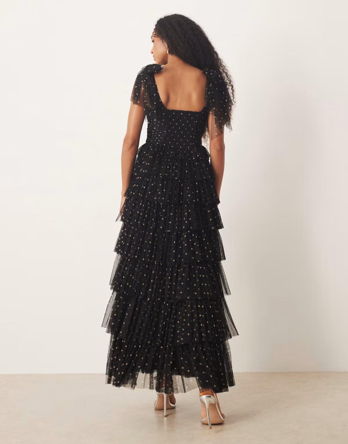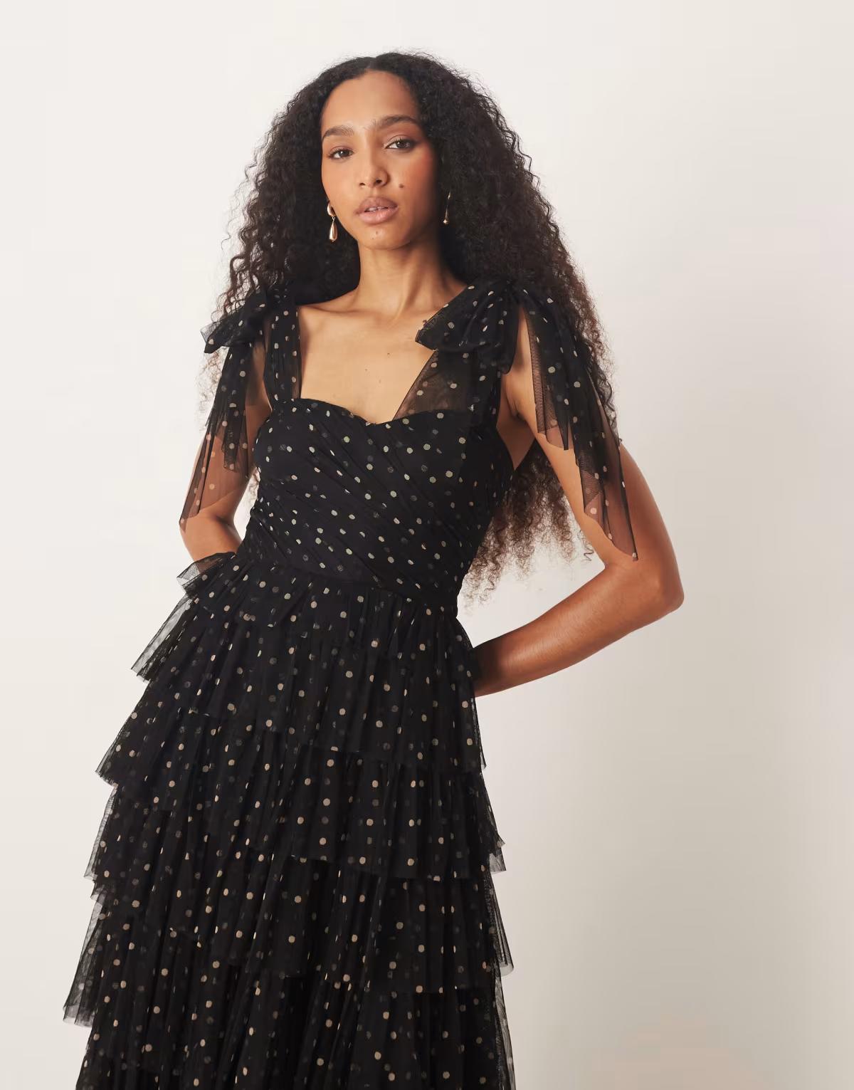BrandLondon-based label Lace & Beads know sparkly dresses are always a good idea, so create the perfect handcrafted party pieces for your BNO. Expect standout embellishment, crop tops and tulle separates that never fail to impress.Size & FitModel's height: 176cm / 5' 9.5Still unsure what size to get? Check out our size guide.