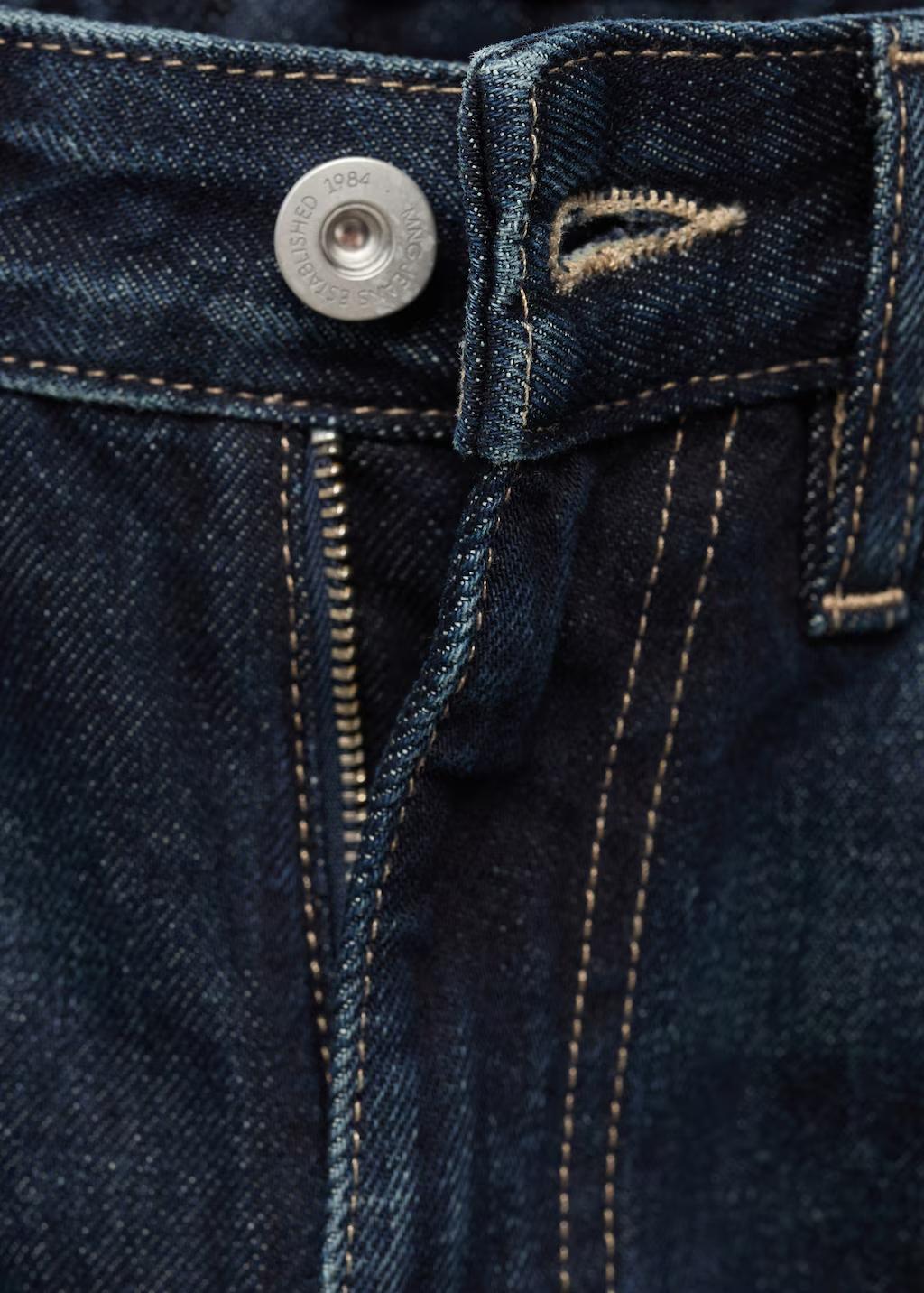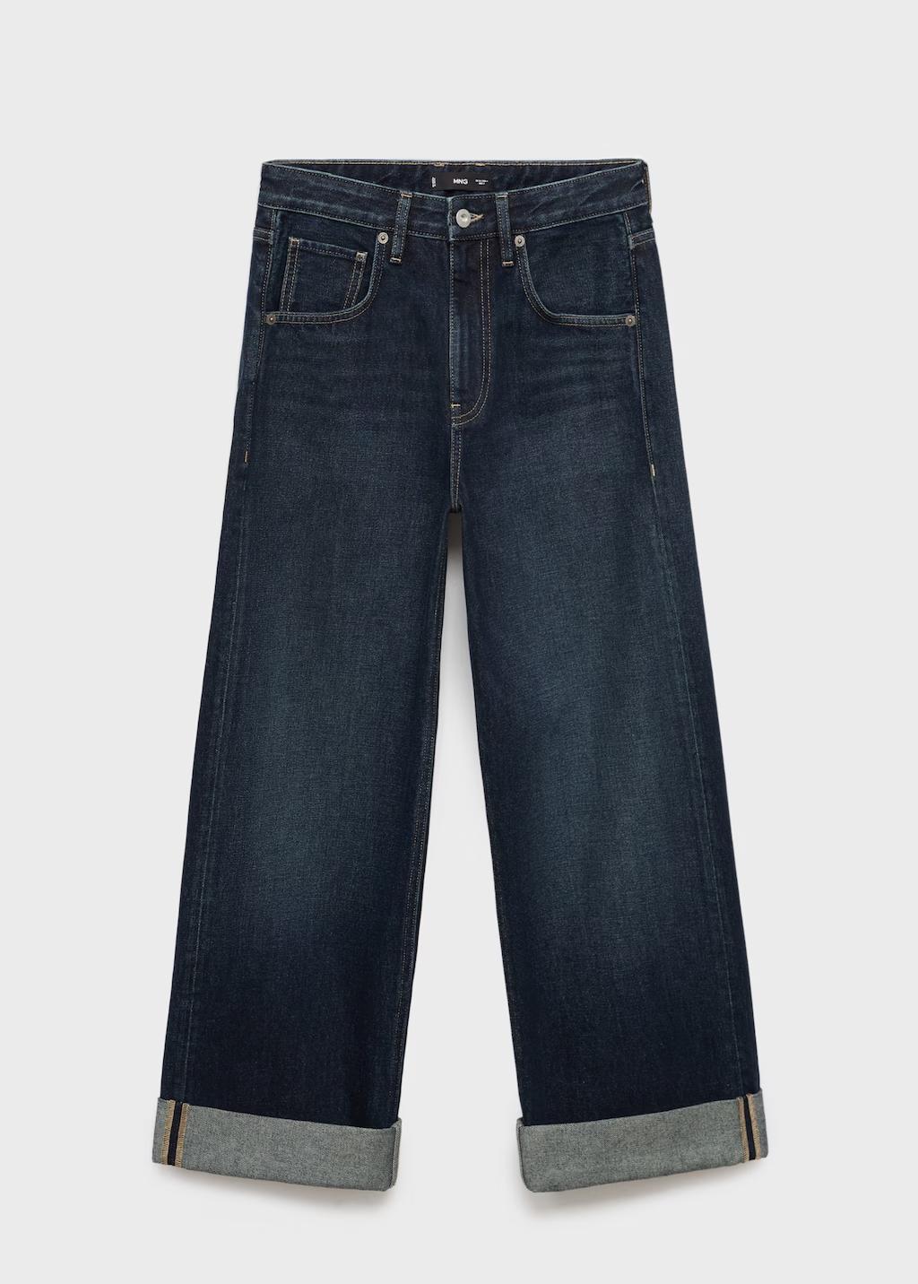 Tejido de algodón estilo tejano vaquero. Largo Tobillero. Diseño wide leg. Tiro medio. Trabillas. Cinco bolsillos. Bajo vuelto. Cierre de botón y cremallera. Largo interior 68 cm. Total look