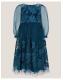 Too gorgeous for words. Perfect for special occasions, this party frock features a velvet bodice and tulle skirt topped with floral embroidery. Designed in a dreamy teal hue, it's finished with long, puffy sleeves. Teal