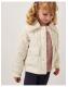 Serving looks, not chills. Snow-M-G, this jacket is a great choice for the transition from autumn to winter styling. Inspired by a bomber jacket silhouette, it's topped with a snuggly soft faux fur collar, stitched with diamond quilting and finished with big pearly button fastenings. Cream