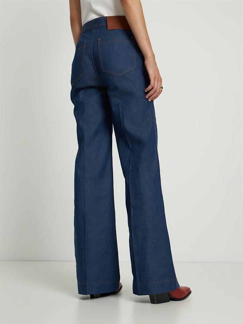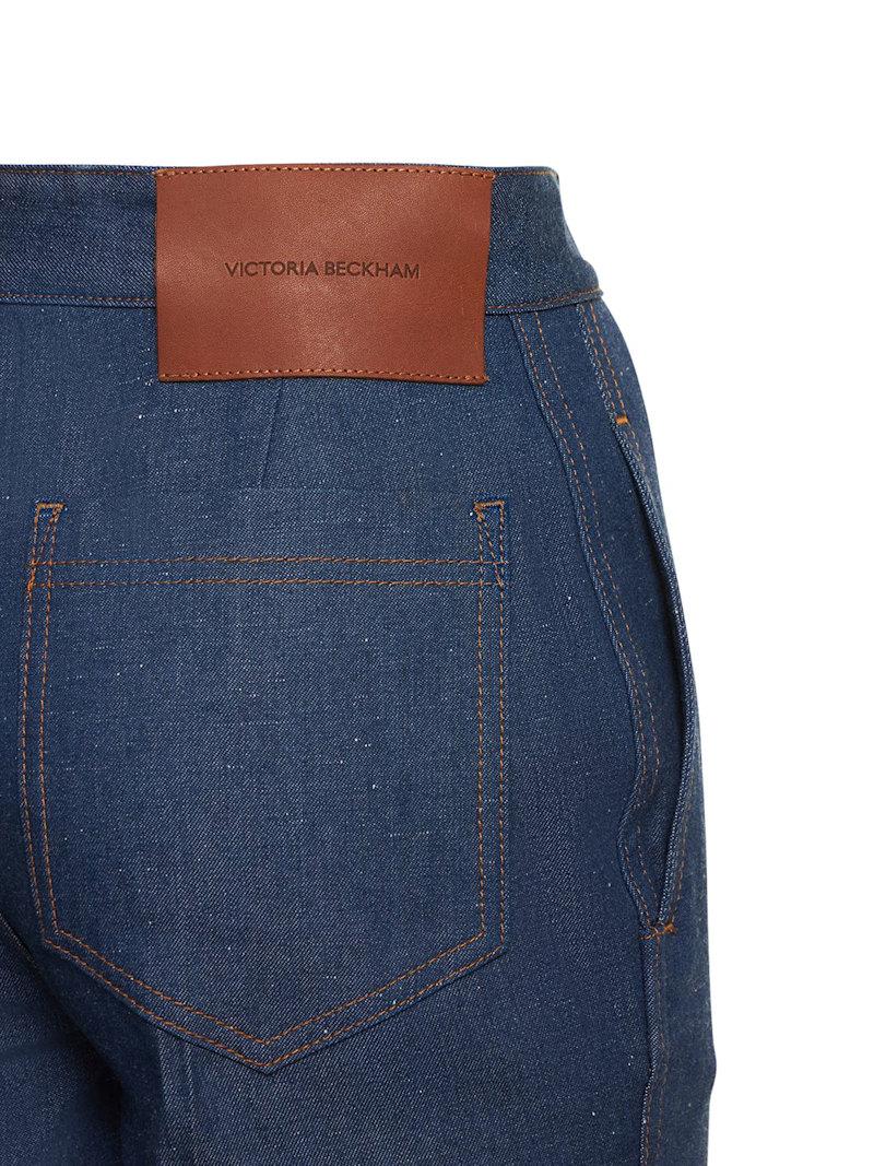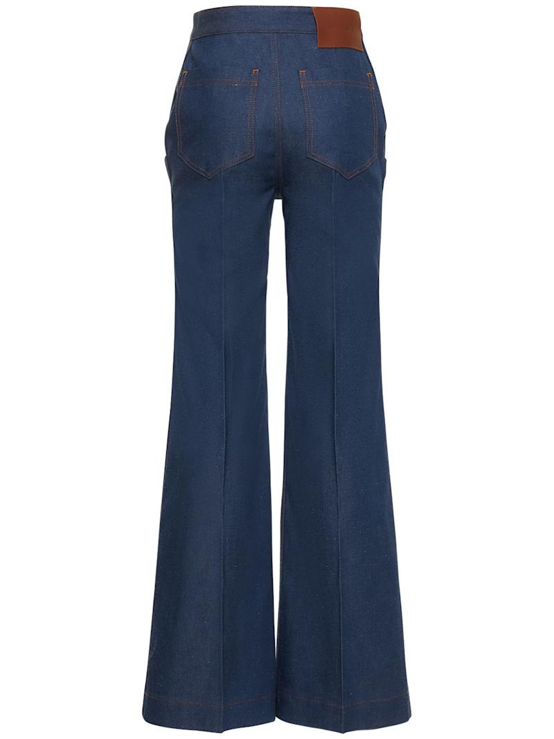 拉链细节棉质喇叭牛仔裤 - 蓝色 - 女士 - Victoria Beckham - 正面双拉链开合.