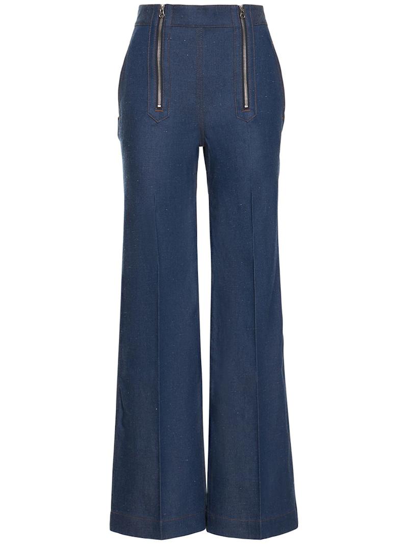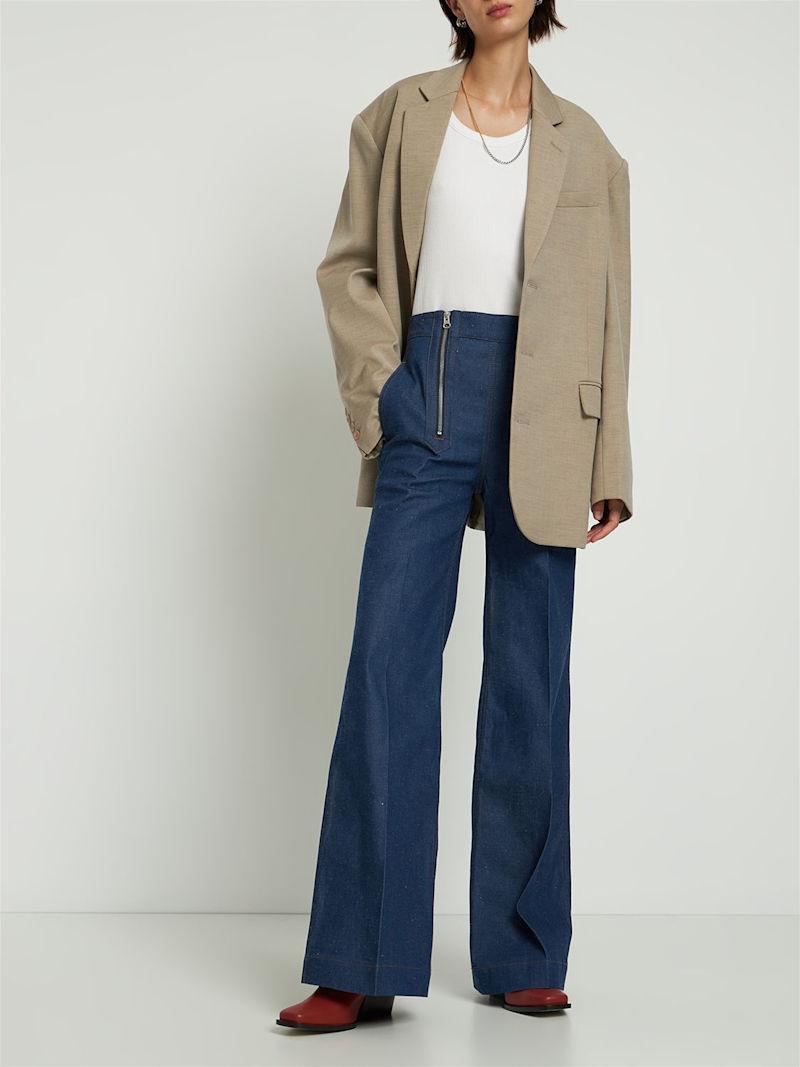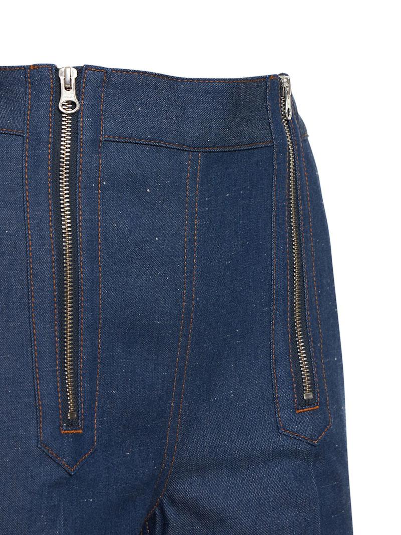 拉链细节棉质喇叭牛仔裤