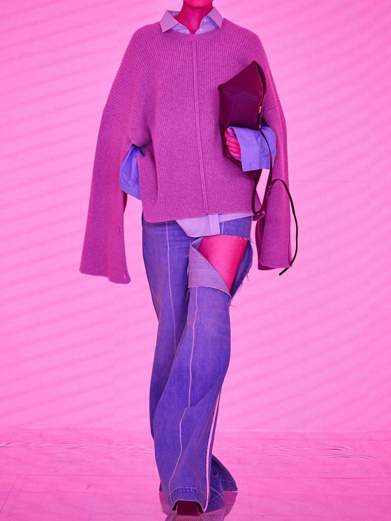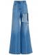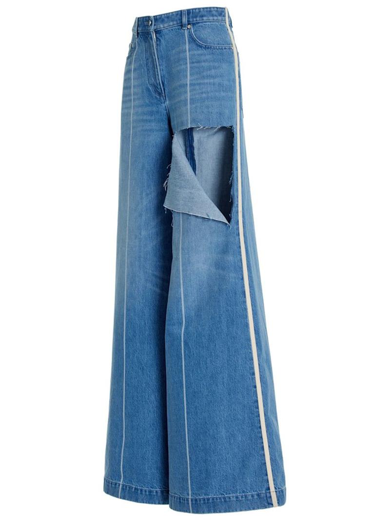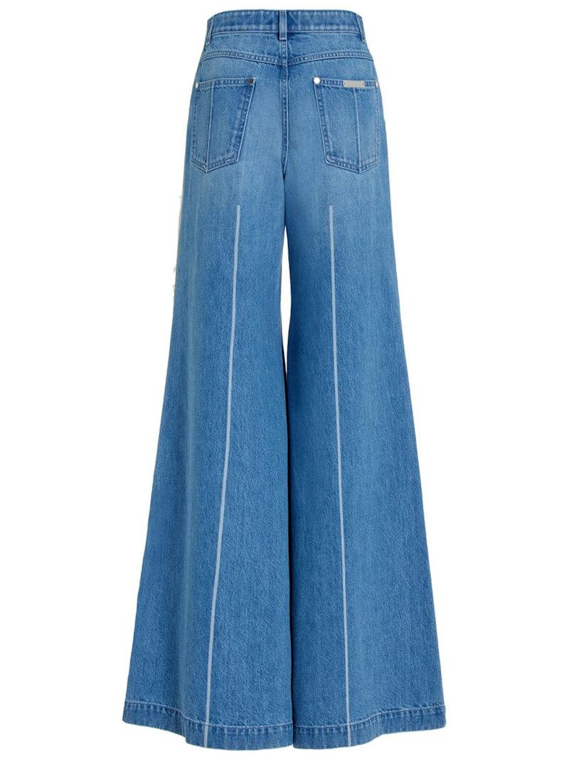 洗水棉质阔腿牛仔裤 - 浅蓝色 - 女士 - Peter Do - 正面纽扣和隐藏式拉链开合.