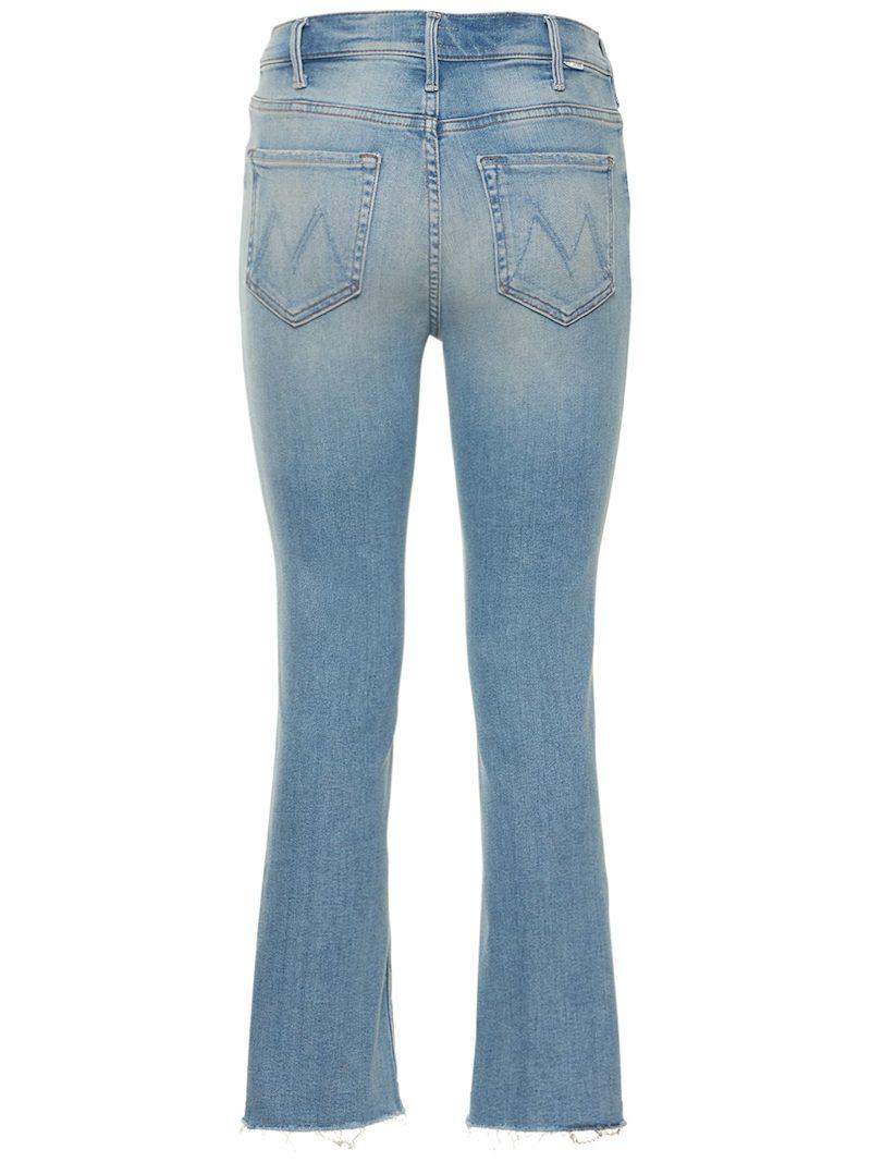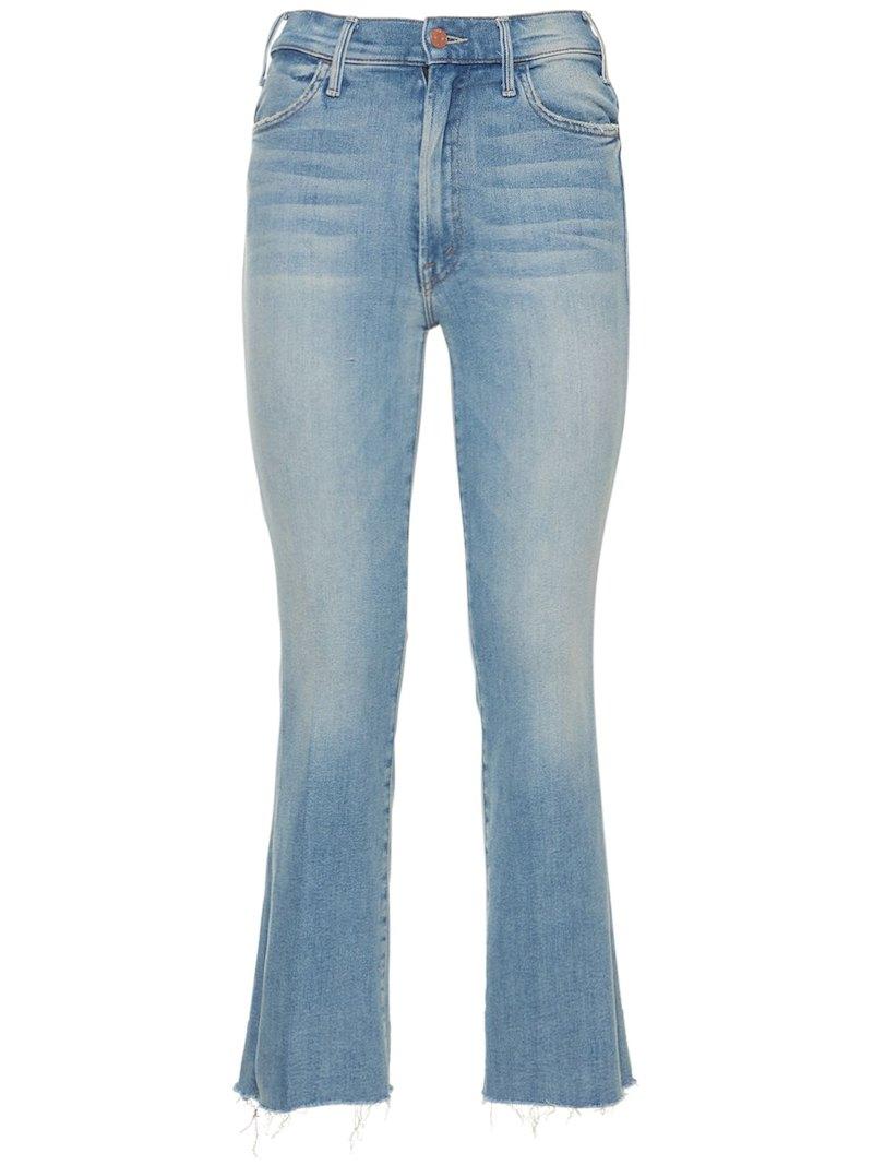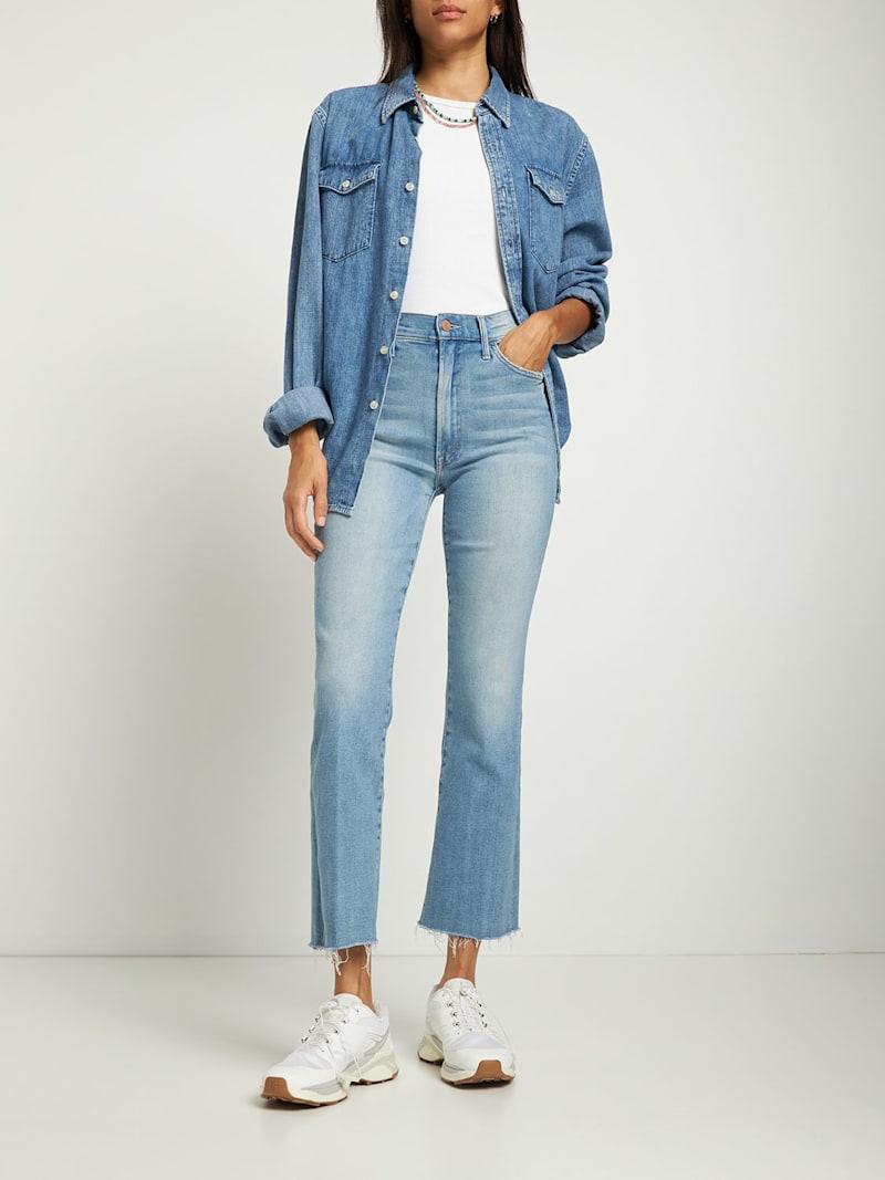 The Hustler弹力牛仔裤 - 浅蓝色 - 女士 - Mother - 正面纽扣和隐藏式拉链开合.