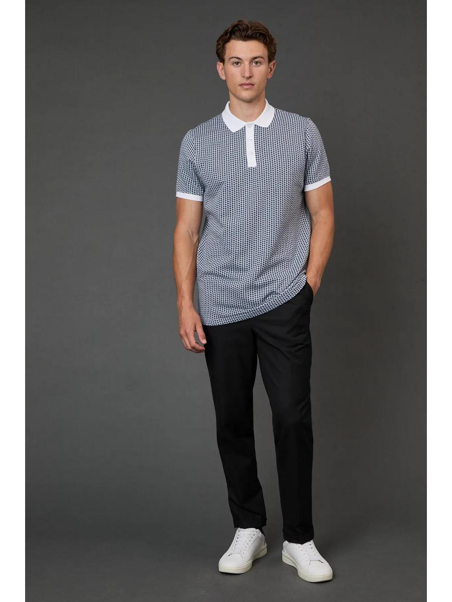 \u003cdiv\u003e \u003cul\u003e \u003cli\u003eDistinctive abstract geometric pattern throughout for a modern twist on classic polo styling\u003c/li\u003e \u003cli\u003eCrisp white collar and placket create a smart contrast against the patterned body\u003c/li\u003e \u003cli\u003eShort sleeves with matching white cuffs for a coordinated finish\u003c/li\u003e \u003cli\u003eThree-button placket allows for customisable neckline depth\u003c/li\u003e \u003cli\u003eCrafted from 100% cotton for breathable comfort throughout the day\u003c/li\u003e\r\n \u003c/ul\u003e\r\n \u003cp\u003eThis Burton abstract geo polo shirt combines timeless style with contemporary pattern work, perfect for the man who appreciates classic designs with a subtle edge. The contrasting white collar and cuffs create a refined look that works brilliantly with dark trousers as shown. Ideal for casual gatherings at the pub with mates or weekend family events, this versatile piece transitions effortlessly from daytime outings to evening socials. Pair with dark chinos and white trainers for an effortlessly smart-casual ensemble, or layer under a lightweight jacket when the weather turns. The breathable cotton fabric ensures comfort during sporting events or while watching the match. Machine washable at 30 degrees, this low-maintenance polo maintains its shape and pattern clarity wear after wear.\u003c/p\u003e \u003c/div\u003e