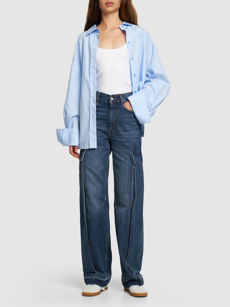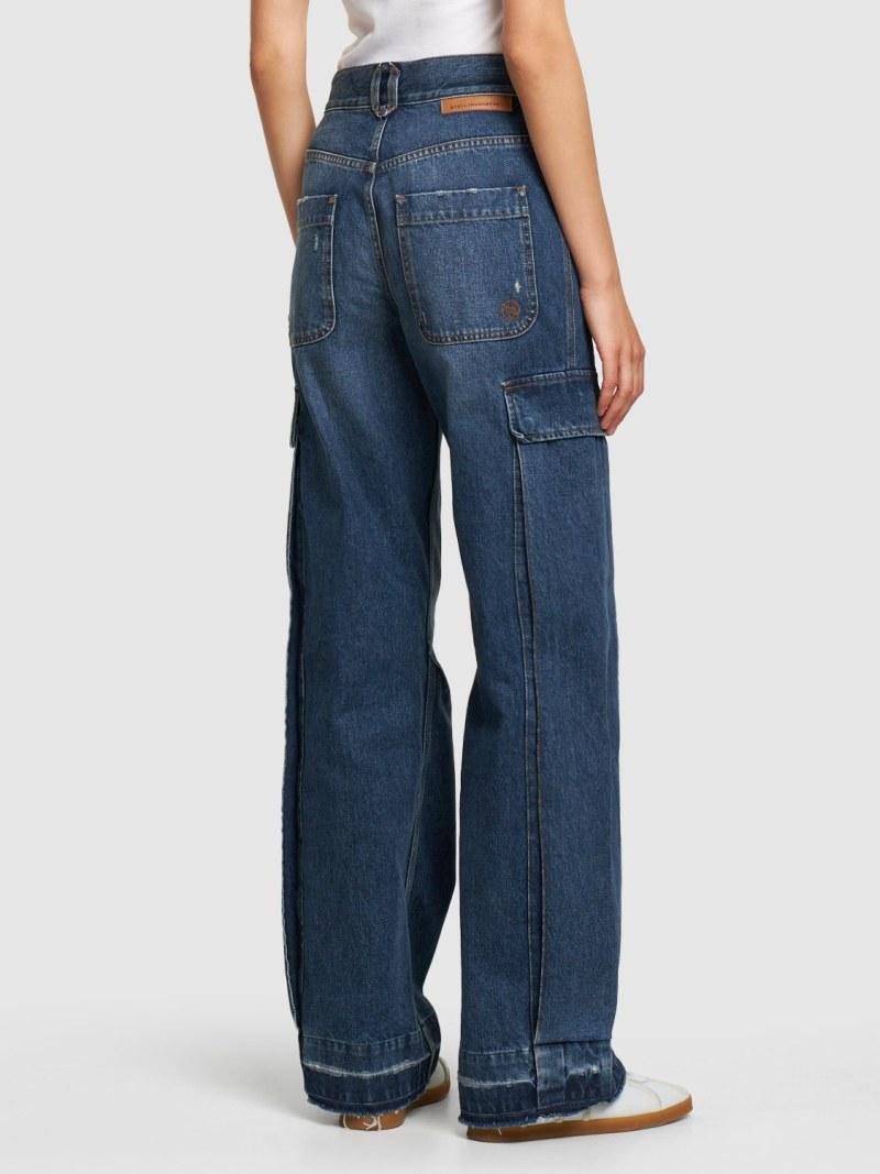 复古棉质工装牛仔裤 - 牛仔 - 女士 - Stella McCartney - 正面纽扣和隐藏式拉链开合.