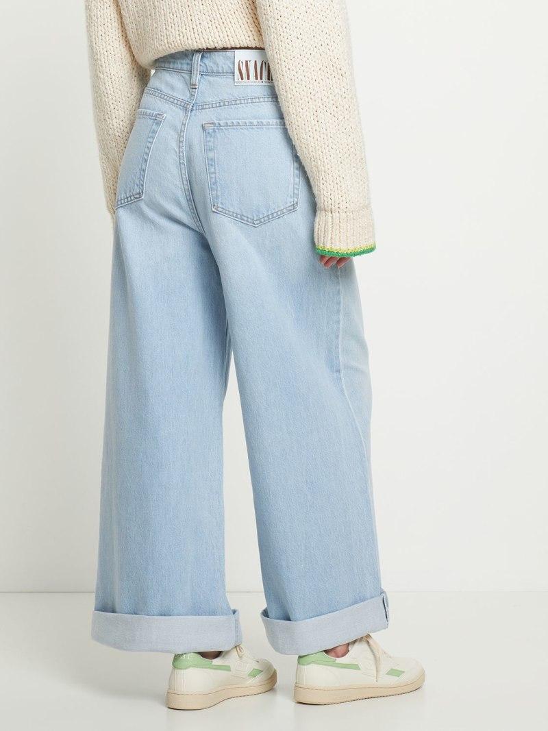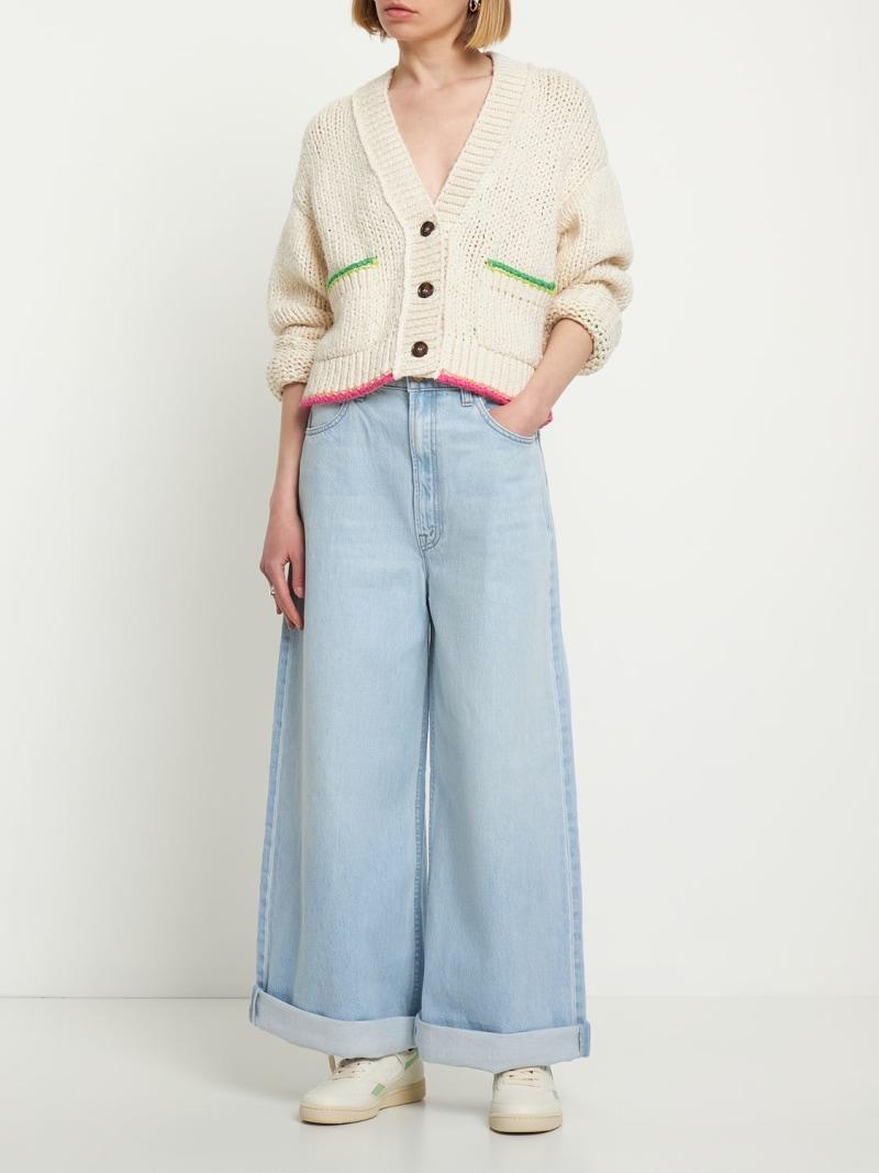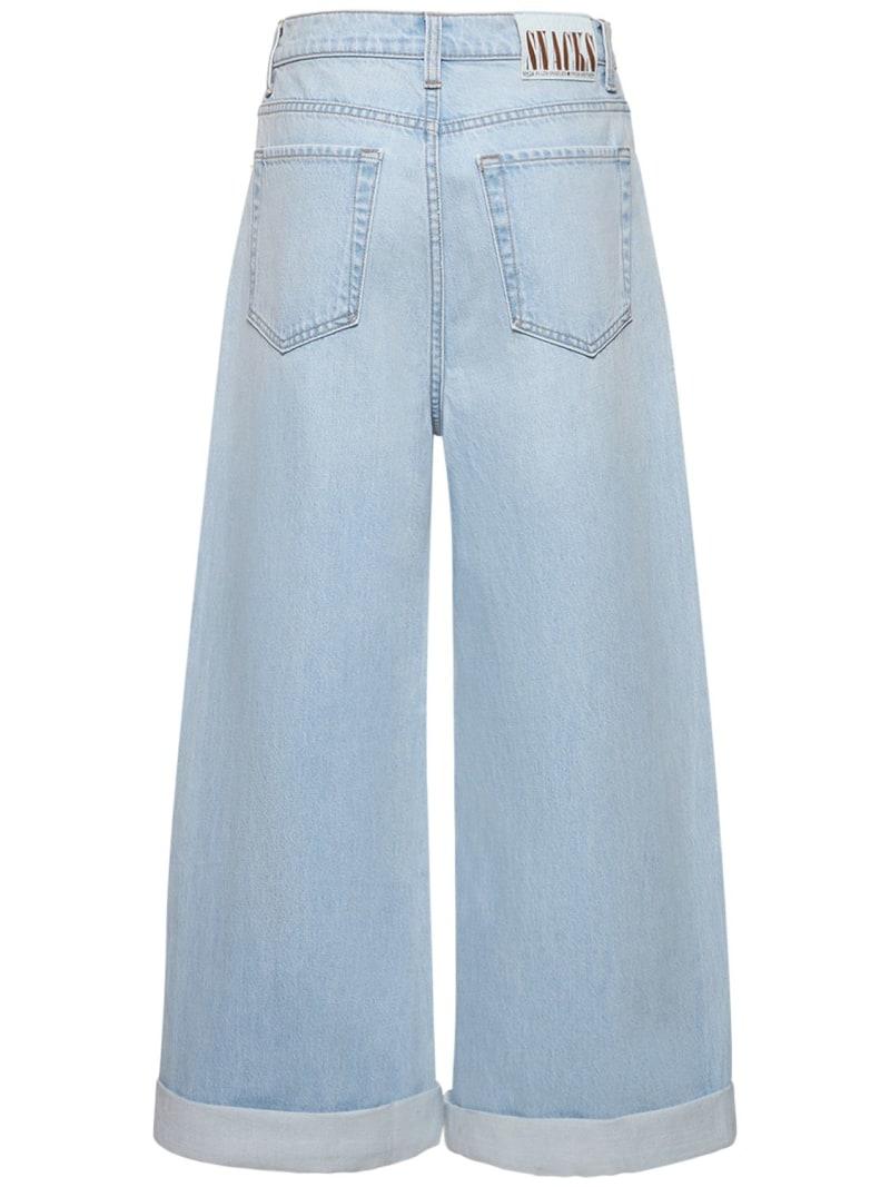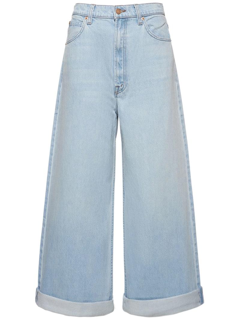 Snacks Push Pop高腰短款牛仔裤 - 蓝色 - 女士 - Mother - 正面纽扣和隐藏式拉链开合.